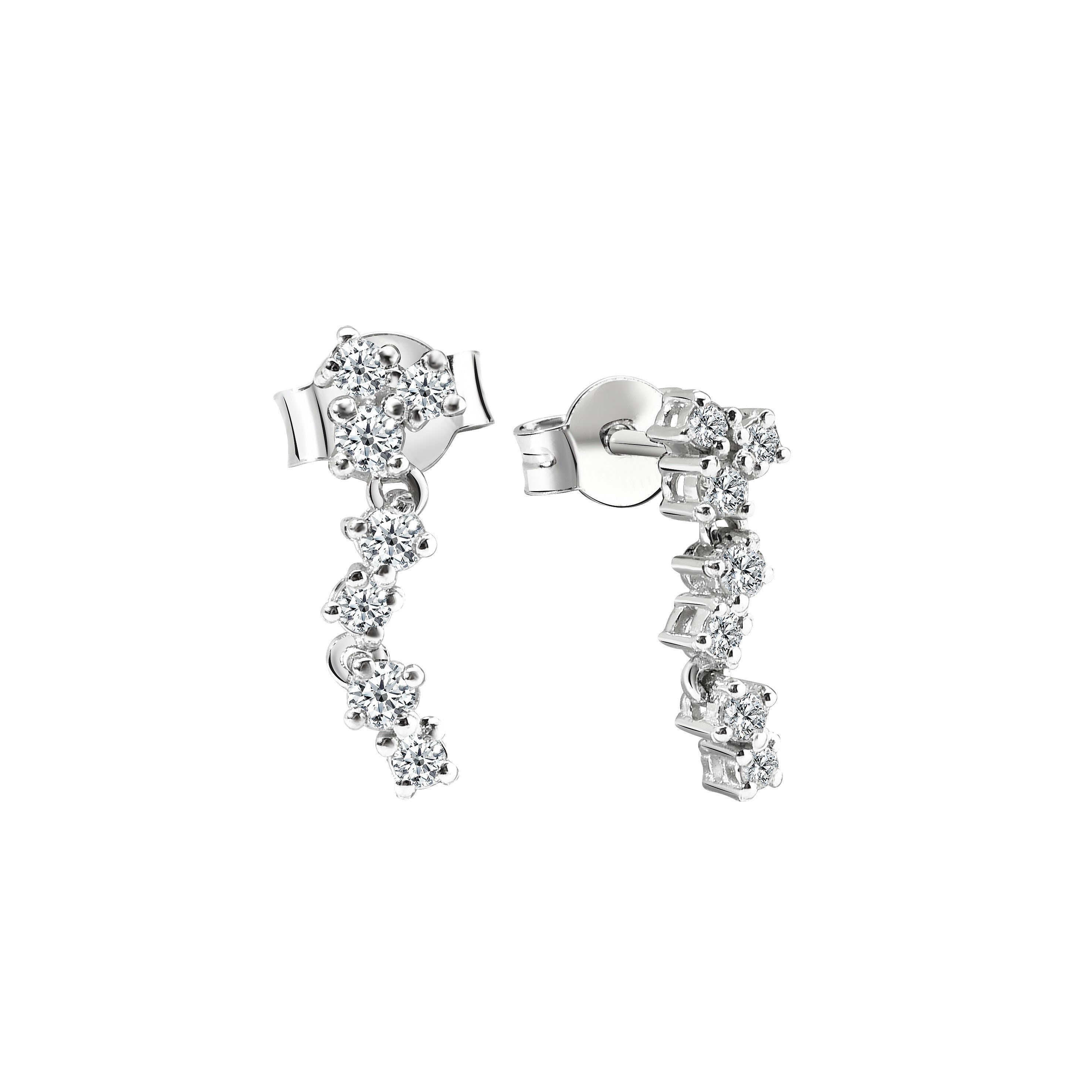Ces boucles d'oreilles sont fabriquées en or blanc 18 carats 750 et possèdent une fermeture à tige sécurisée. Elle est sertie de 14 diamants taille brillant d'un poids total de 0,27 carat. Les diamants ont les caractéristiques de qualité FG (couleur) et SI (clarté), ce qui signifie une transparence élevée et peu d'inclusions.