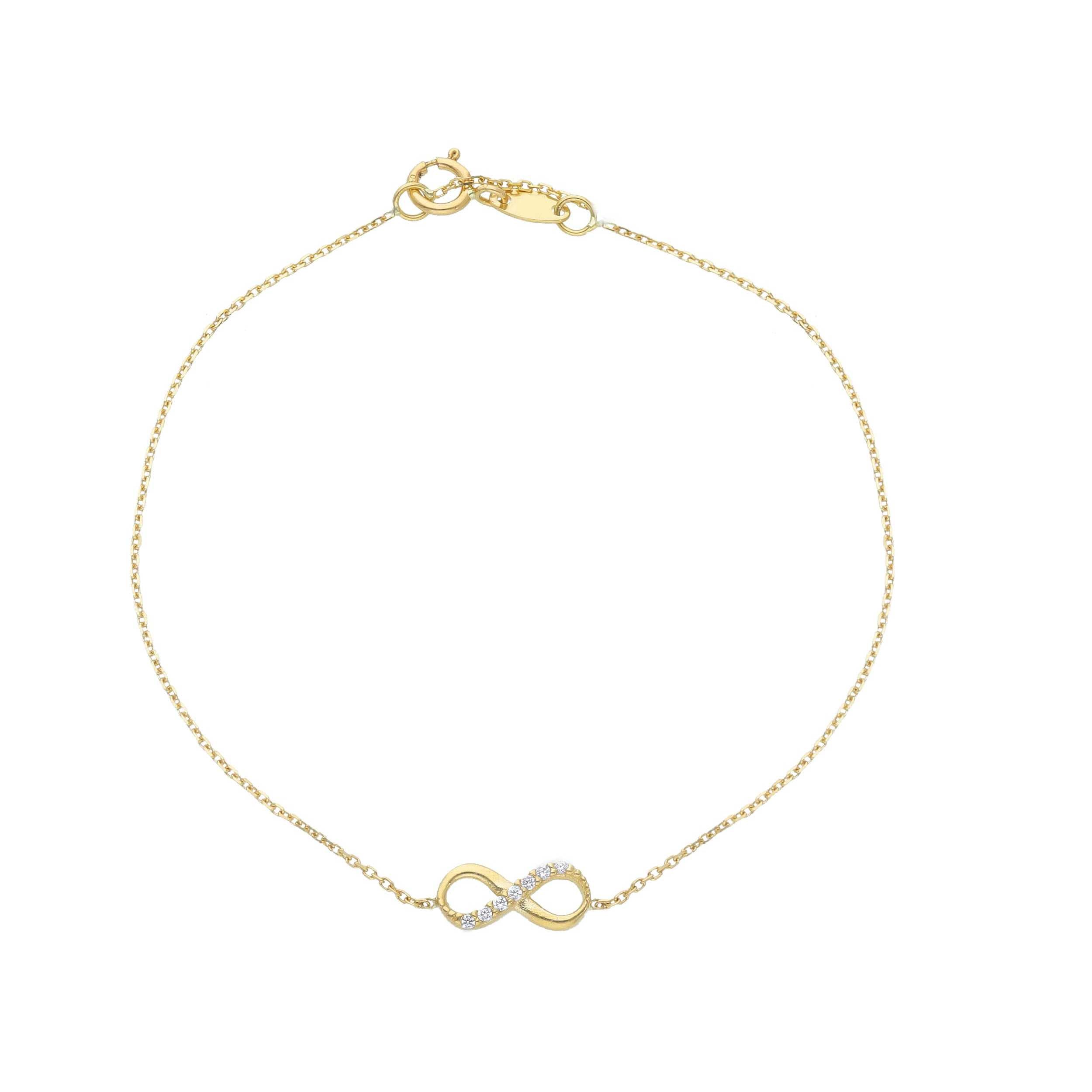 Ces élégants bracelets infinis en or fin 18 carats 750 allient une forme classique à une touche de glamour. Choisissez entre l'or jaune brillant ou l'or blanc froid – les deux versions mettent parfaitement en valeur le design délicat. Une pierre de zircone étincelante ajoute un éclat subtil et fait du bijou un élément élégant à porter au quotidien et lors d'occasions spéciales. Le fermoir à ressort sécurisé assure un port confortable, tandis que le certificat d'authenticité ci-joint confirme la haute qualité du bijou.