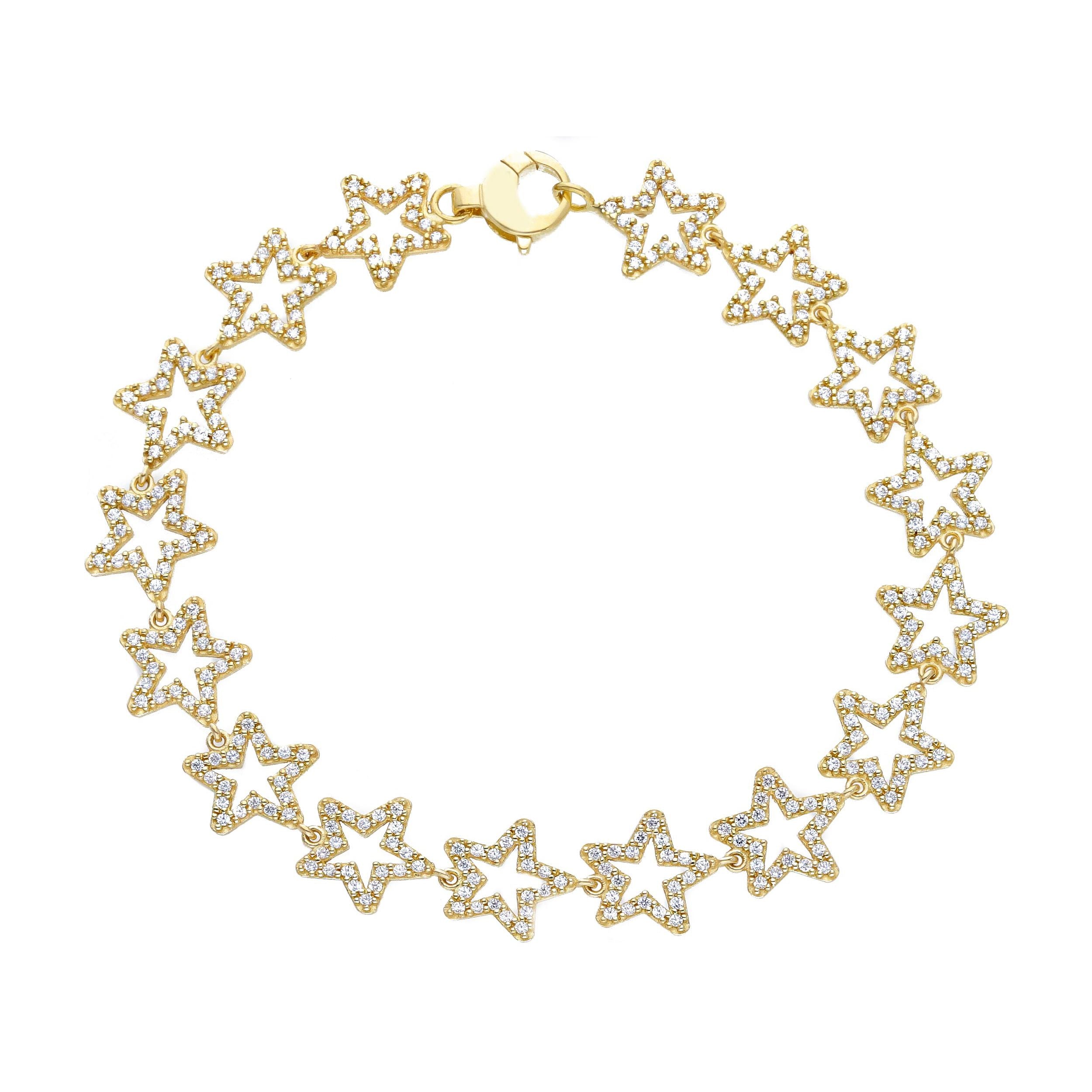 Ces élégants bracelets étoiles en or fin 18 carats 750 allient une forme classique à une touche de glamour. Choisissez entre l'or jaune brillant ou l'or blanc froid – les deux versions mettent parfaitement en valeur le design délicat. Une pierre de zircone étincelante ajoute un éclat subtil et fait du bijou un élément élégant à porter au quotidien et lors d'occasions spéciales. Le fermoir à ressort sécurisé assure un port confortable, tandis que le certificat d'authenticité ci-joint confirme la haute qualité du bijou.