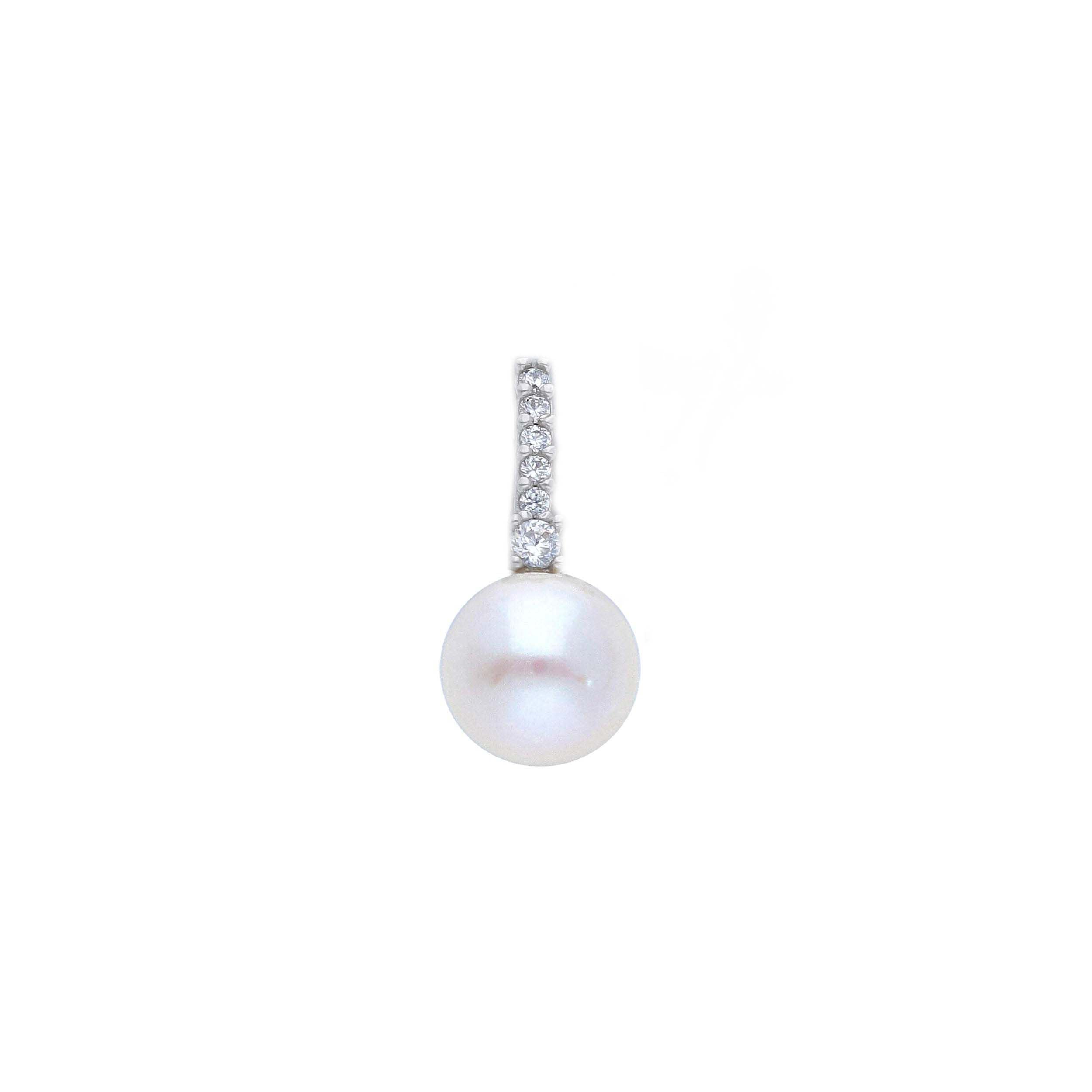 Dieser edle Anhänger aus 18 Karat 750 Weissgold vereint zeitlose Eleganz mit feinster Handwerkskunst. Verziert mit einer hochwertigen Süsswasserperle und funkelnden Zirkonia-Steinen ist er ein stilvoller Blickfang für jeden Anlass. Das Schmuckstück wird mit einem Echtheitszertifikat geliefert und innerhalb von ca. einer Woche versendet.