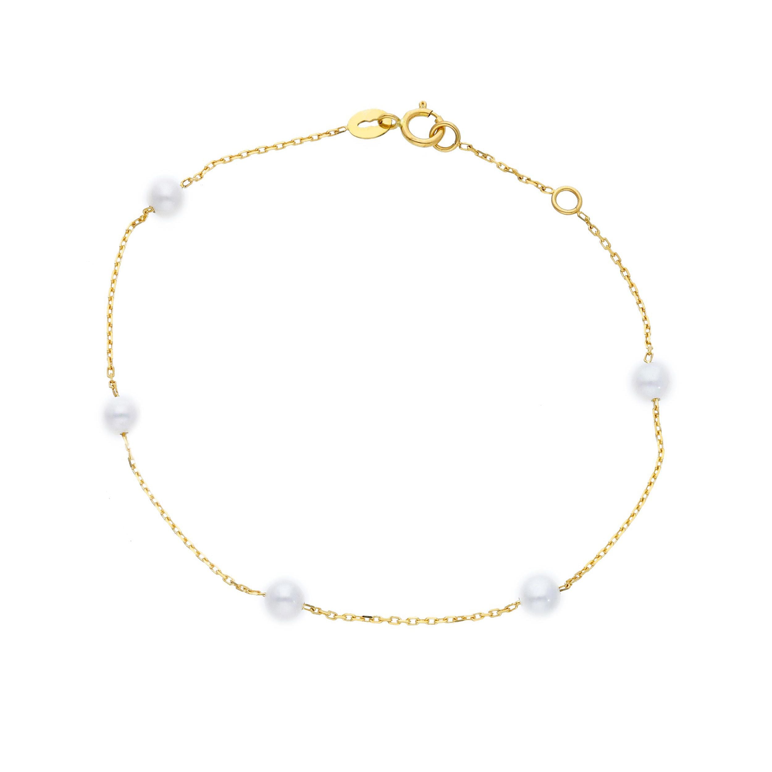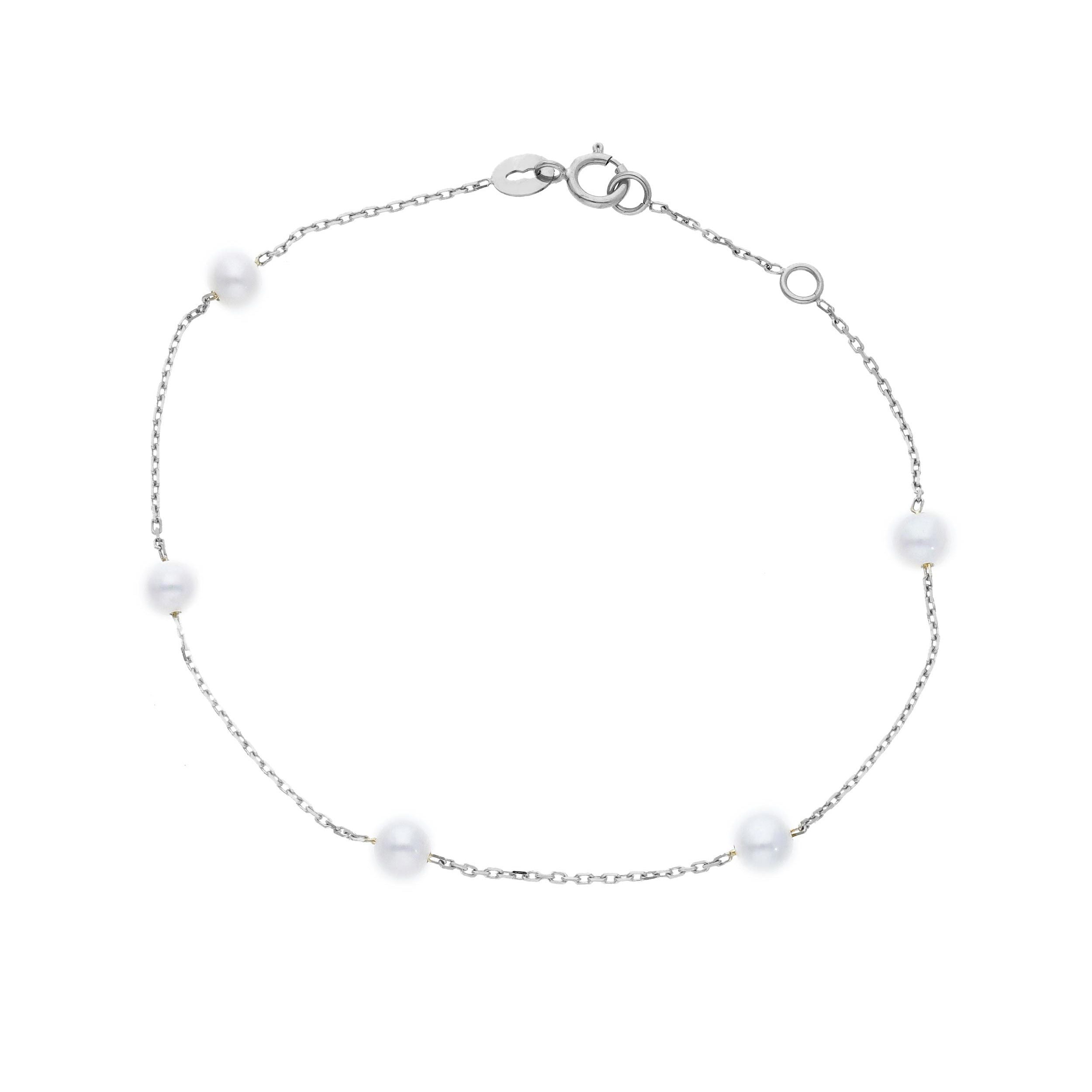 Feines Armband aus 18 Karat Gold (750) in Weiss- und Gelbgold, veredelt mit eleganten Süsswasserperlen. Leichtes Design mit einem Gewicht von ca. 1,30 g und praktischem Federringverschluss. Inklusive Echtheitszertifikat. Lieferzeit ca. 1 Woche – stilvoller Perlenschmuck für jeden Anlass.