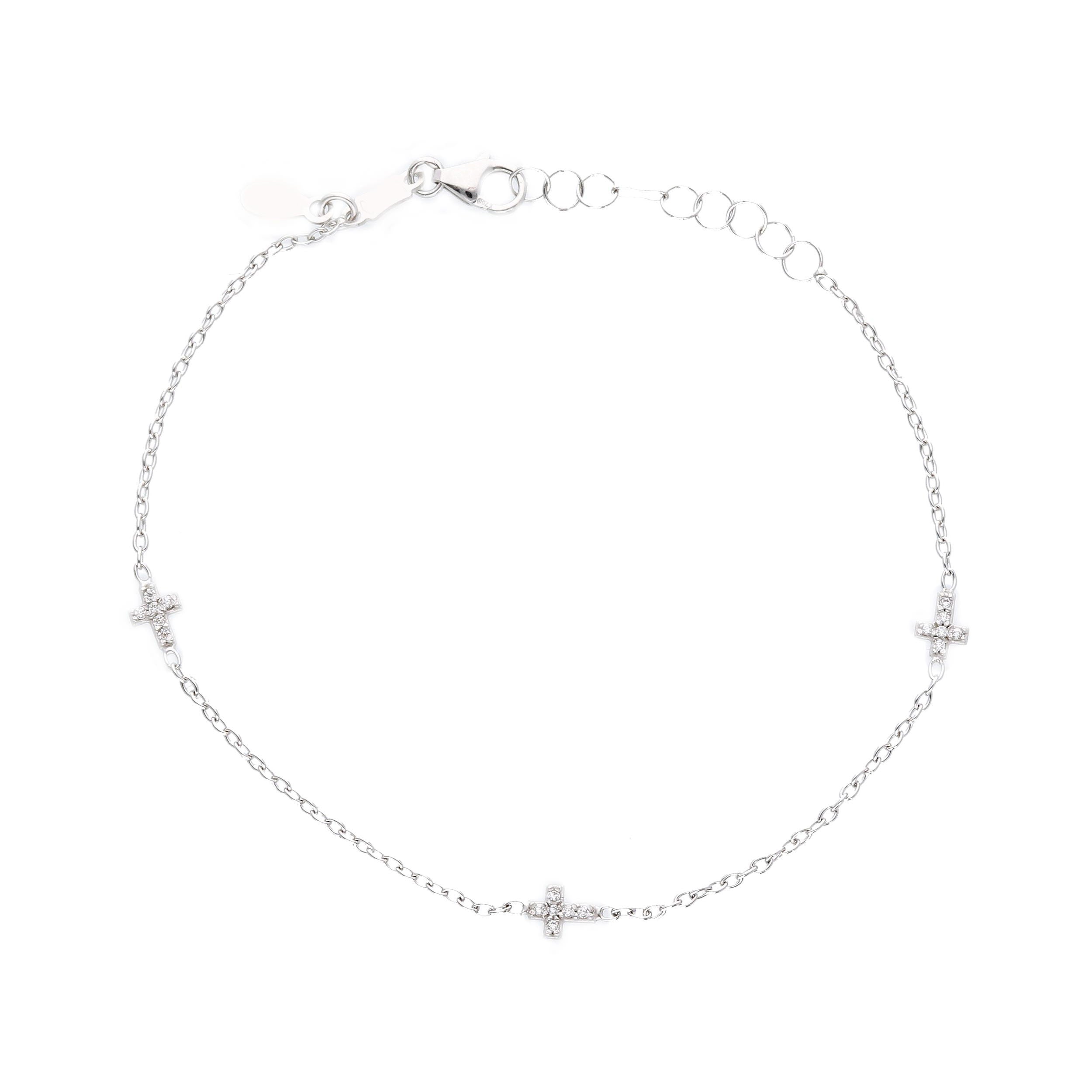 Cet élégant bracelet en or blanc 18 carats (750) allie beauté intemporelle et design moderne. La croix filigrane, décorée de pierres de zircone étincelantes, confère au bijou un charisme particulier. Avec une longueur de 16 cm plus une extension de 2 cm, il est polyvalent et s'adapte parfaitement à votre poignet.