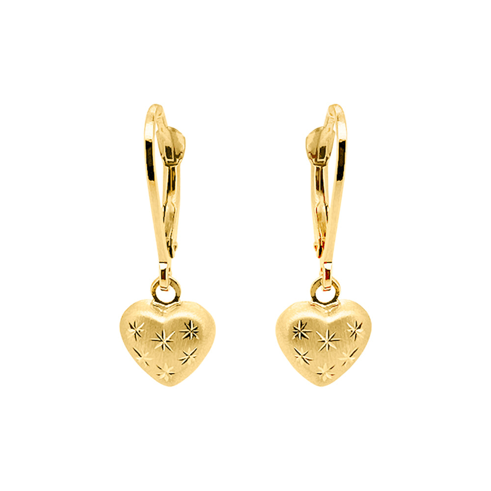 Ces boucles d'oreilles pour enfants enchanteront votre petit par leur look adorable. Ils sont fabriqués en or jaune 18 carats. Le point fort est les éléments en forme de cœur qui décorent ces jolis détails. Cette boucle d'oreille surprendra chaque petite fille et fera son accessoire préféré. Qu'elles soient élégantes à l'école ou tendance pour jouer avec des amis, faites briller les yeux des enfants avec ces fabuleuses boucles d'oreilles.