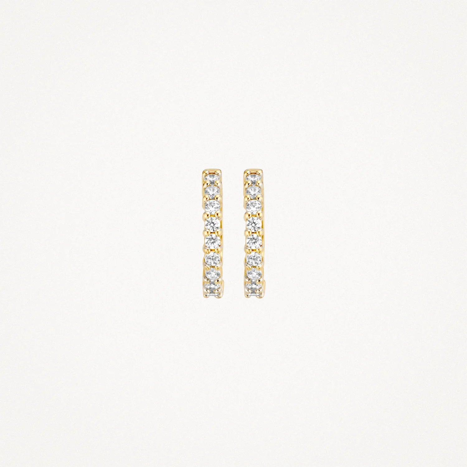 Des zircones taille brillant sont serties sur le devant des boucles d'oreilles avec des chatons