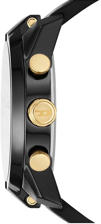 La montre pour homme Diesel Chronograph Split impressionne par son design saisissant : un bracelet en cuir noir et un cadran noir lui confèrent un look sophistiqué. Les bords et les poussoirs dorés ajoutent des accents attrayants, tandis que le boîtier noir crée un look puissant. Cette montre allie élégance sportive et fonctionnalité contemporaine et constitue l'accessoire parfait pour l'homme soucieux de son style.
