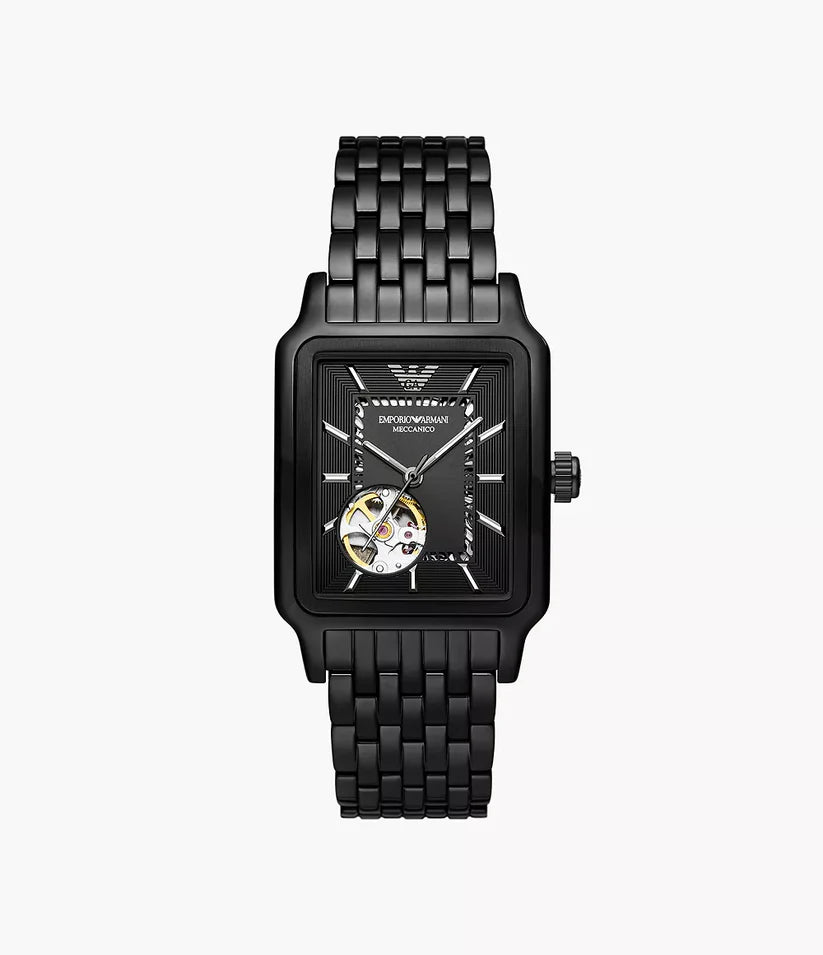 Die Emporio Armani AR60058 Herrenuhr ist ein stilvolles Meisterwerk, das italienisches Luxusdesign mit moderner Technik verbindet. Mit einem 36 mm Edelstahlgehäuse in elegantem Schwarz und einem passenden Edelstahlarmband wirkt diese Uhr zeitlos und maskulin zugleich. Das Automatikwerk mit drei Zeigern sorgt für präzise Zeitangaben, während das schwarze Zifferblatt der Uhr eine edle Tiefe verleiht. Dank Mineralglas bleibt das Zifferblatt optimal geschützt, und mit einer Wasserdichtigkeit von 5 ATM ist die Uhr im Alltag zuverlässig, auch bei Regen oder Händewaschen. Der Butterfly-Verschluss sorgt für sicheren Halt und hohen Tragekomfort, während die Armbandlänge von rund 200 mm universell passt.