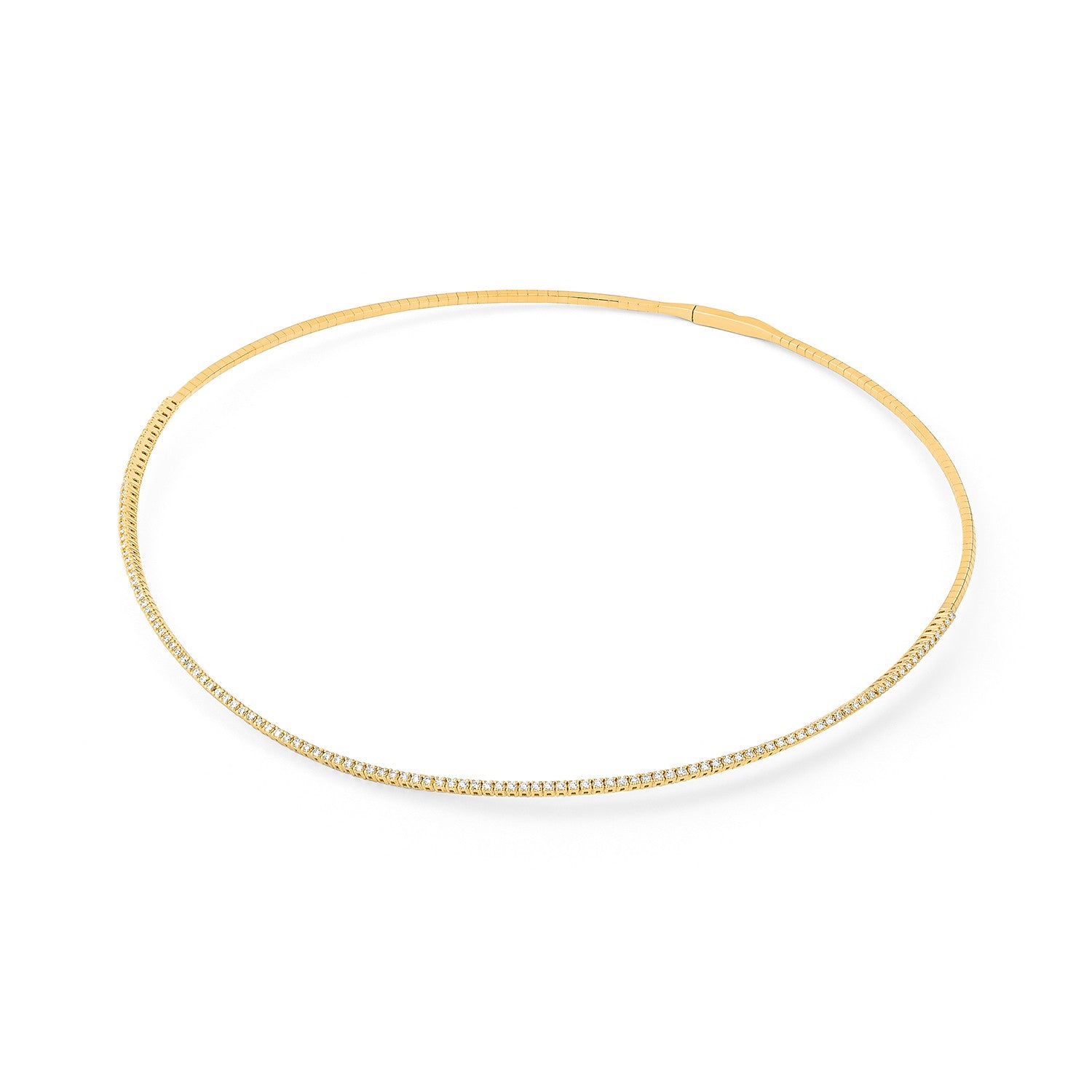 Parez-vous de la beauté époustouflante de notre collier tennis facetté en or jaune 18 carats - 750, orné de 117 diamants totalisant 0,99 carat.