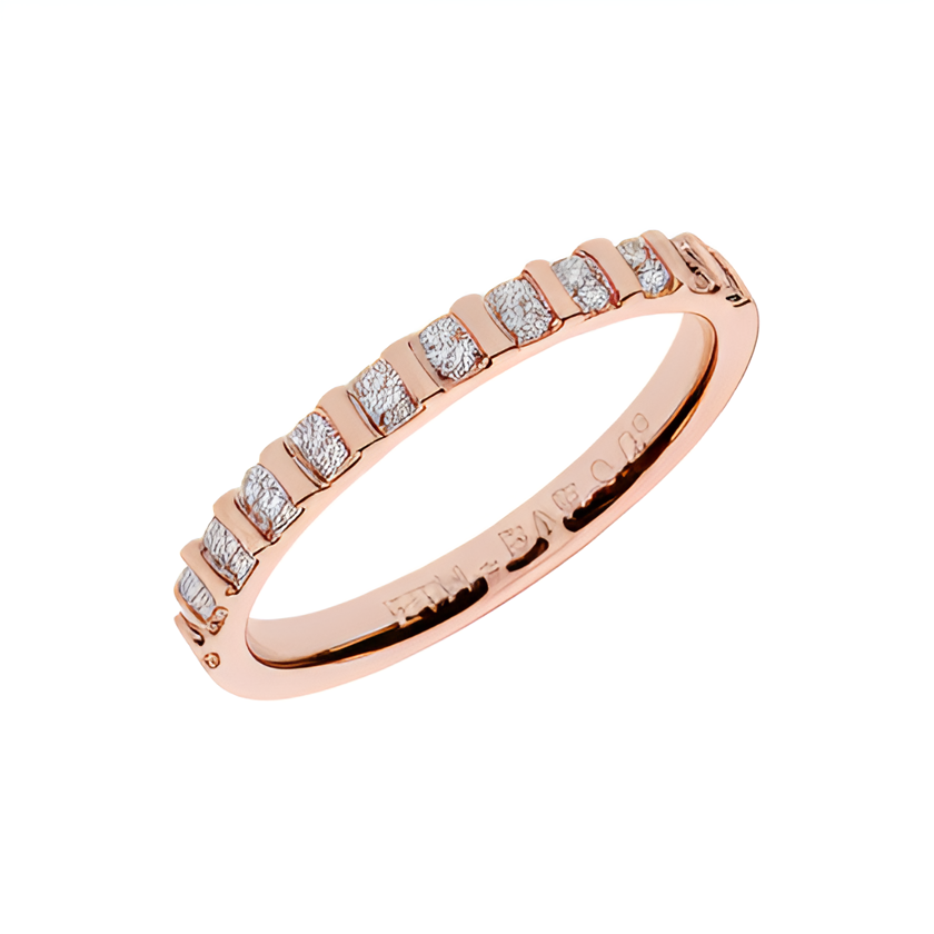 Cette bague, catégorisée comme semi-mémoire, est sertie de diamants étincelants de haute qualité, spécifiquement en taille brillant.