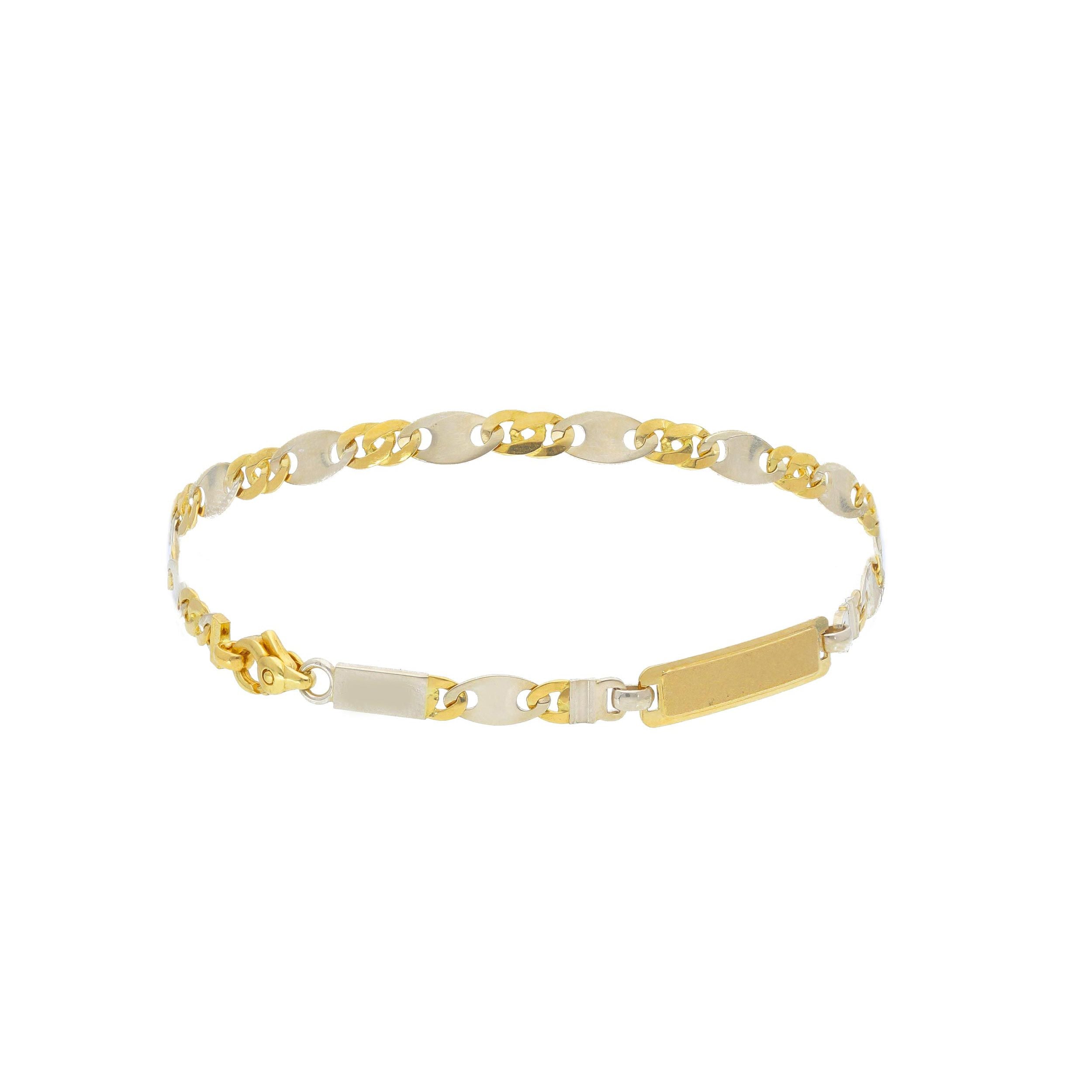 Le bracelet combine l'or jaune précieux et l'or blanc , lui donnant un look bicolore moderne. Le point central est la plaque de gravure discrète, qui peut être personnalisée avec un nom, une date ou un message personnel - idéale comme cadeau significatif ou comme expression de votre propre style.