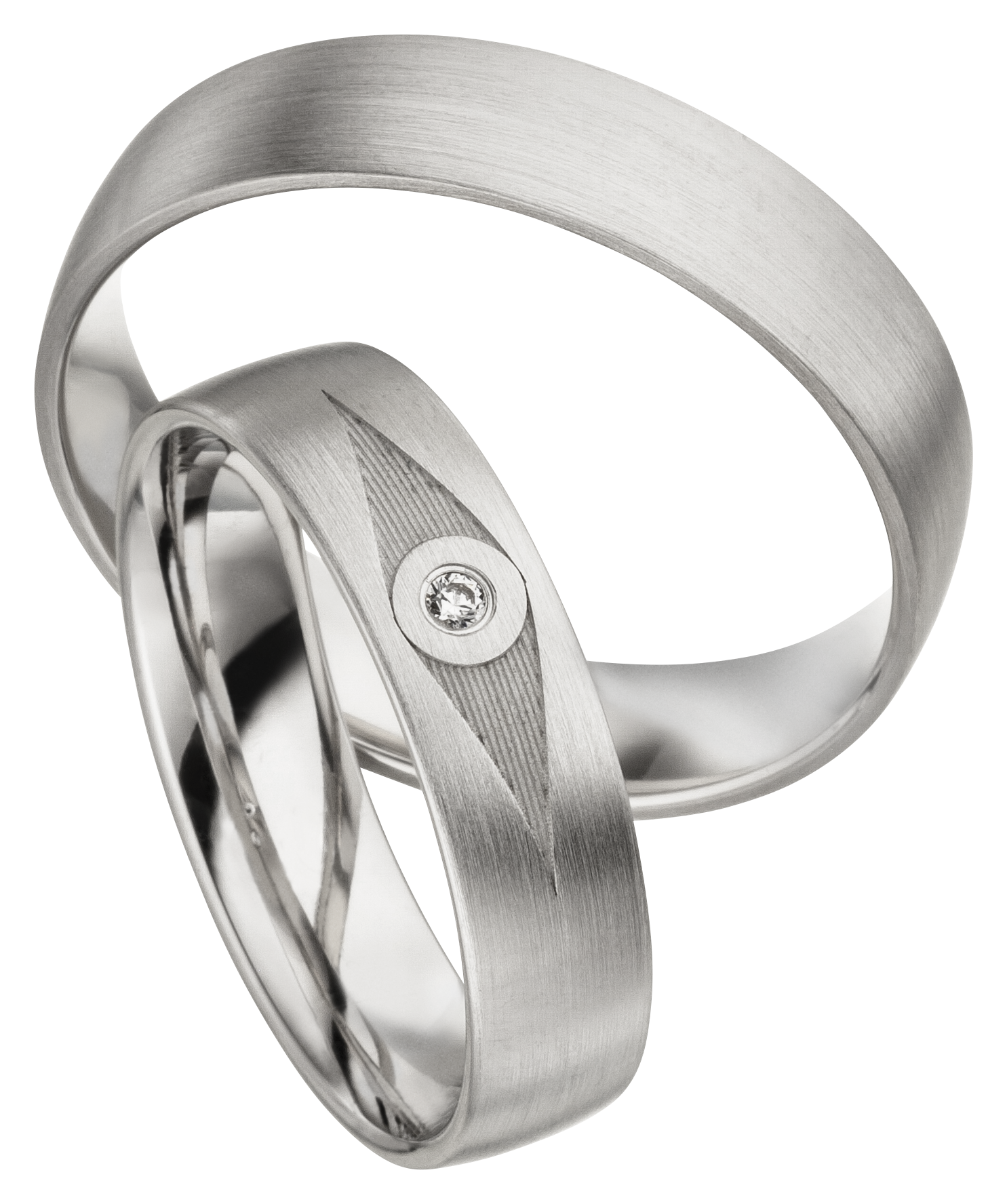 Mit einer Breite von 5,00 mm und einer zarten Höhe von 1,40 mm bieten sie höchsten Tragekomfort und eine stilvolle Optik. Der Diamant (W/si) mit einem Karatgewicht von 0.0135 ct. setzt einen eleganten Akzent und verleiht den Ringen eine besonders edle Ausstrahlung.