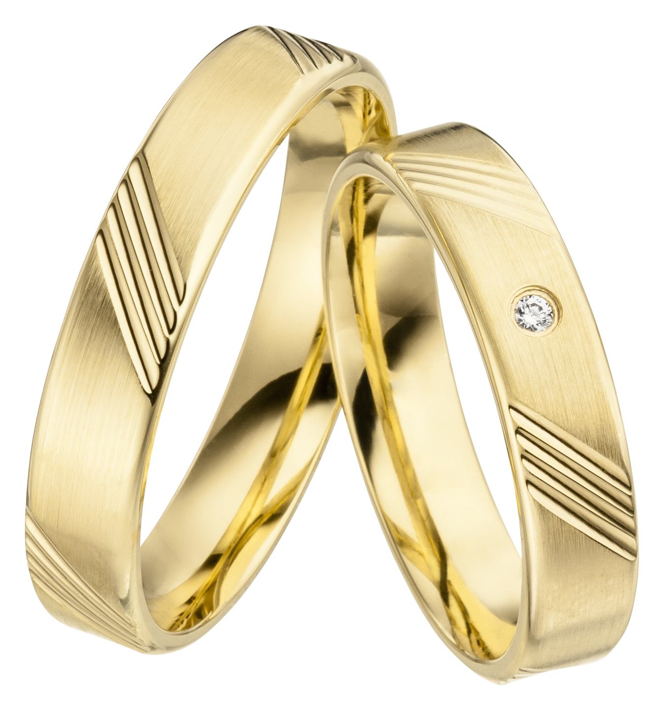 Mit einer Breite von 4,50 mm und einer Höhe von 1,30 mm bieten sie einen angenehmen Tragekomfort. Ein funkelnder W/si-Diamant von 0.0135 ct. verleiht den Ringen eine dezente, elegante Note.