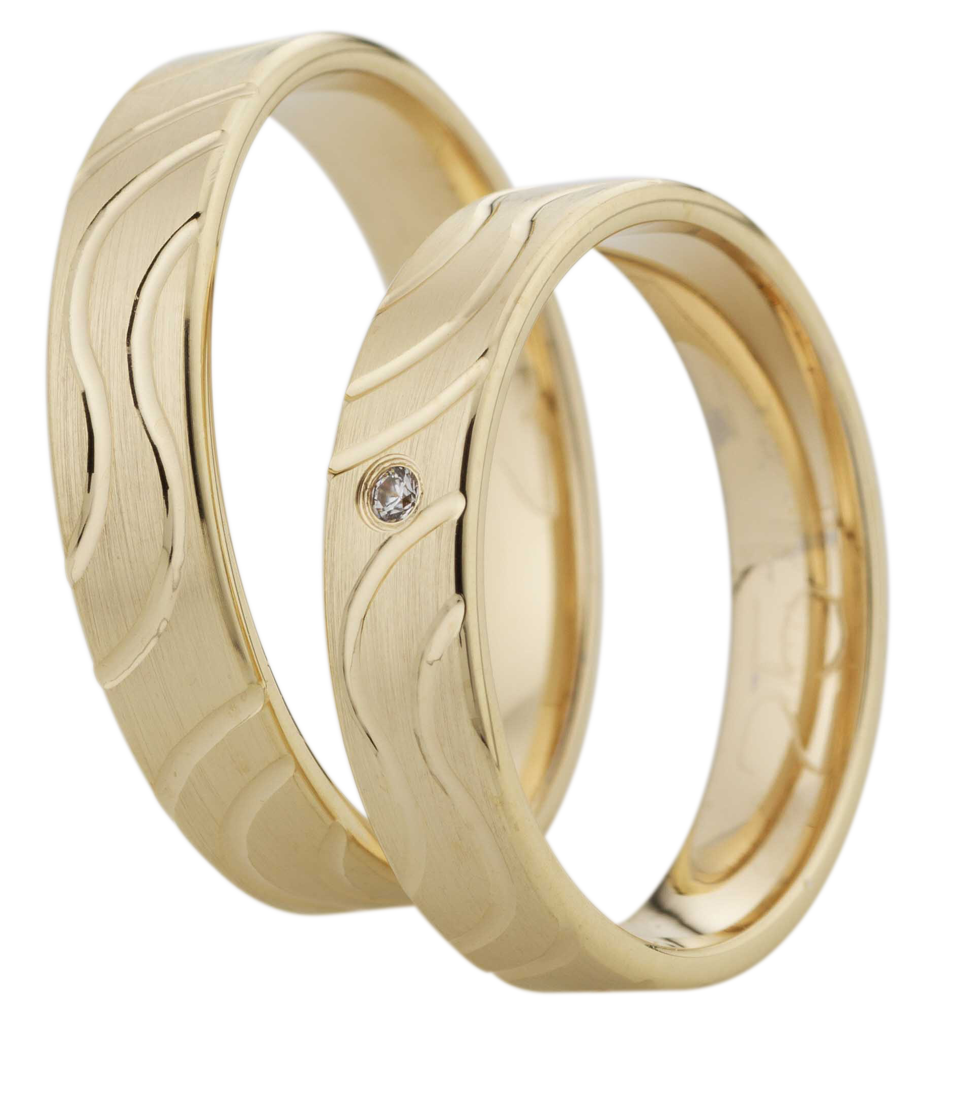 Mit einer Breite von 4,50 mm und einer Höhe von 1,30 mm bieten sie einen angenehmen Tragekomfort. Ein funkelnder W/si-Diamant von 0.0135 ct. verleiht den Ringen eine dezente, stilvolle Note.