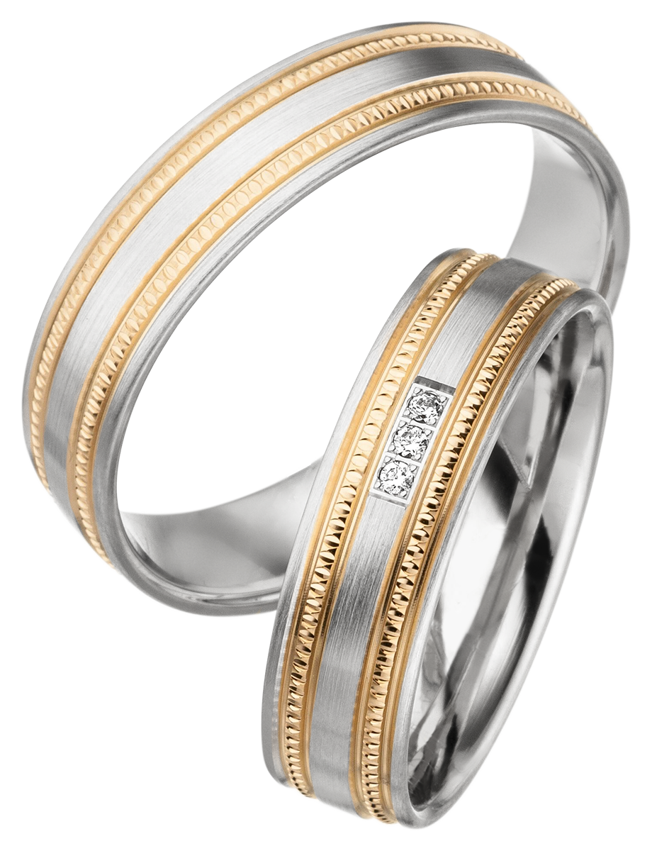 Die Linden Trauringe / Eheringe Bicolor Winkel kombinieren klassische Eleganz mit moderner Ästhetik. Diese edlen Ringe sind in 9 Karat (375), 14 Karat (585) oder 18 Karat (750) Gold erhältlich und vereinen Weissgold, Gelbgold und Roségold zu einem einzigartigen Bicolor-Design.