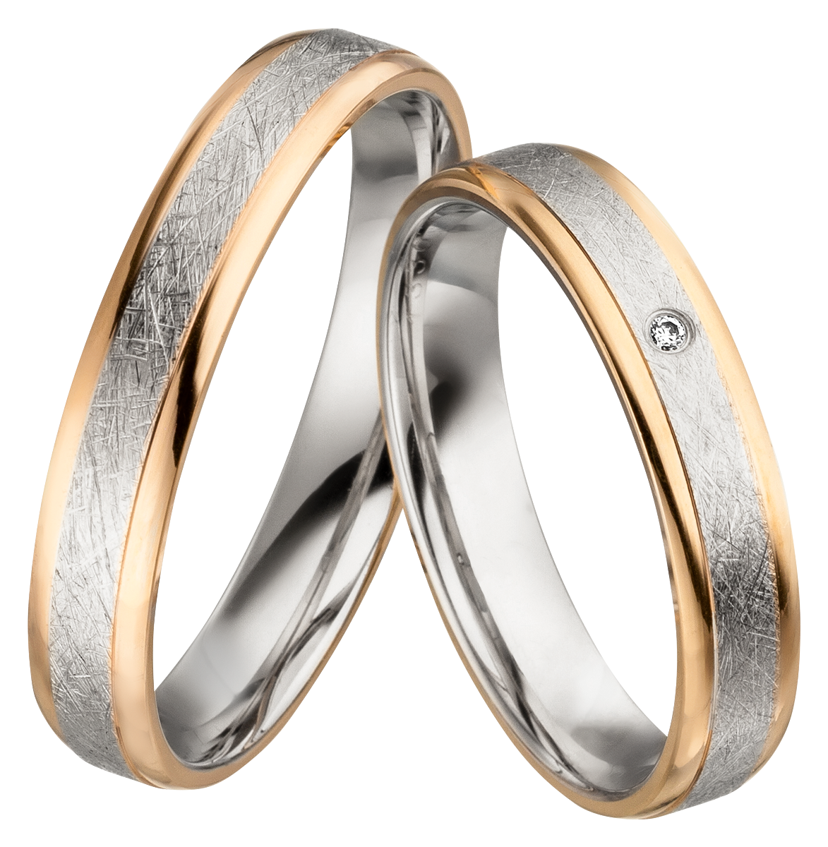 Mit einer Breite von 4,00 mm und einer feinen Höhe von 1,50 mm bieten diese Trauringe höchsten Tragekomfort. Ein Diamant (W/si) mit 0.0135 ct. setzt einen eleganten Akzent und macht den Ring zu einem echten Blickfang.