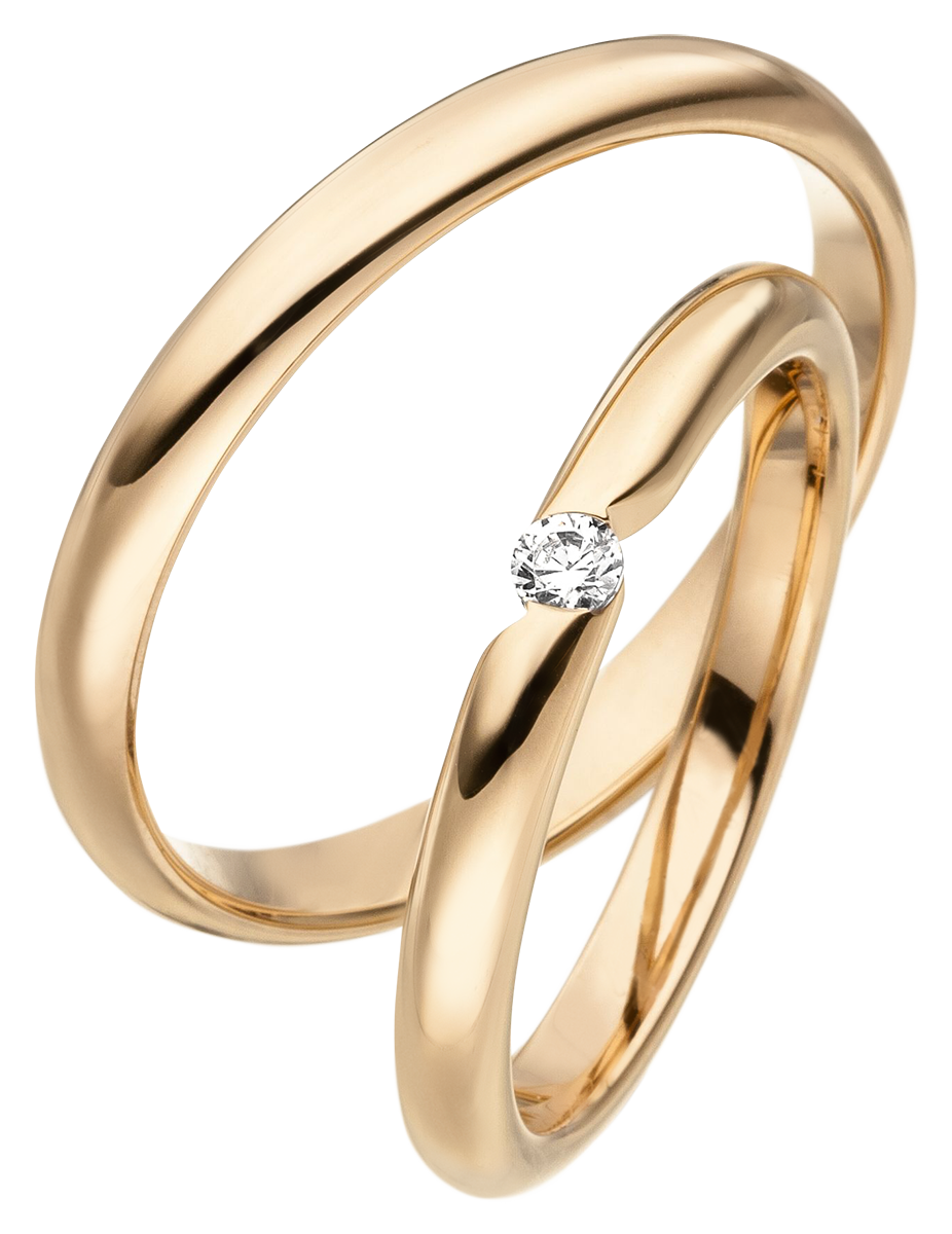 Ein Diamant (W/si, 0.0600 ct.) setzt einen funkelnden Akzent und verleiht den Ringen eine besondere Eleganz. Mit einer Höhe von 1.60 mm / 2.00 mm und einer Breite von 3.00 mm / 2.60 mm bieten die Ringe sowohl Komfort als auch einen eleganten Look.