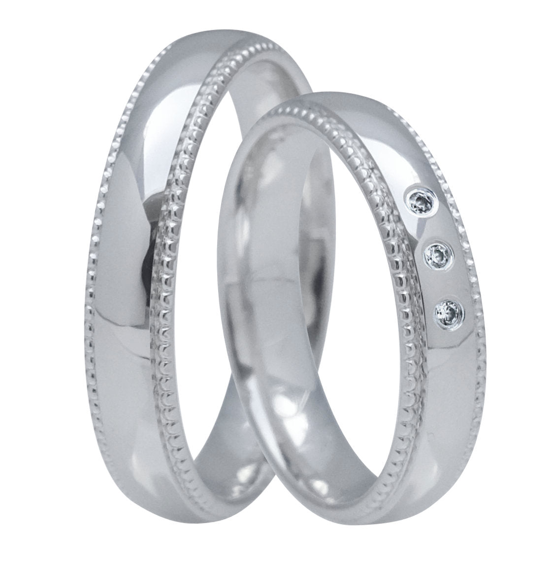 Drei funkelnde Diamanten (W/si, 0.008 ct.) setzen dezente Akzente und verleihen den Ringen eine elegante Ausstrahlung. Mit einer Breite von 4,50 mm und einer Höhe von 1,80 mm bieten sie höchsten Tragekomfort und eine perfekte Balance zwischen Schlichtheit und Raffinesse.