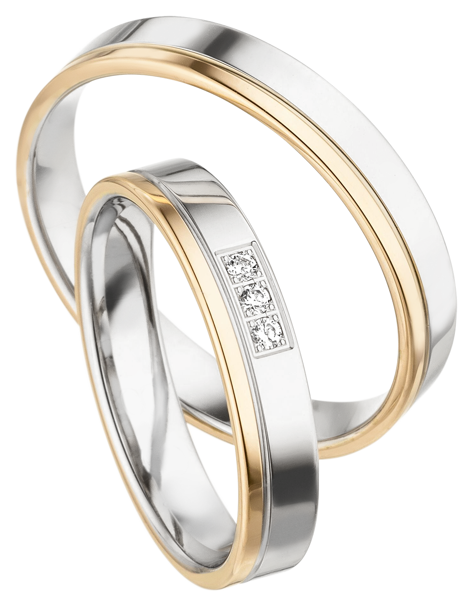 Drei funkelnde Diamanten (W/si, 0.0135 ct.) setzen edle Akzente und machen die Ringe zu einem strahlenden Symbol Ihrer Liebe. Mit einer Höhe von 1.30 mm und einer Breite von 4.00 mm bieten sie optimalen Tragekomfort und eine stilvolle Optik.