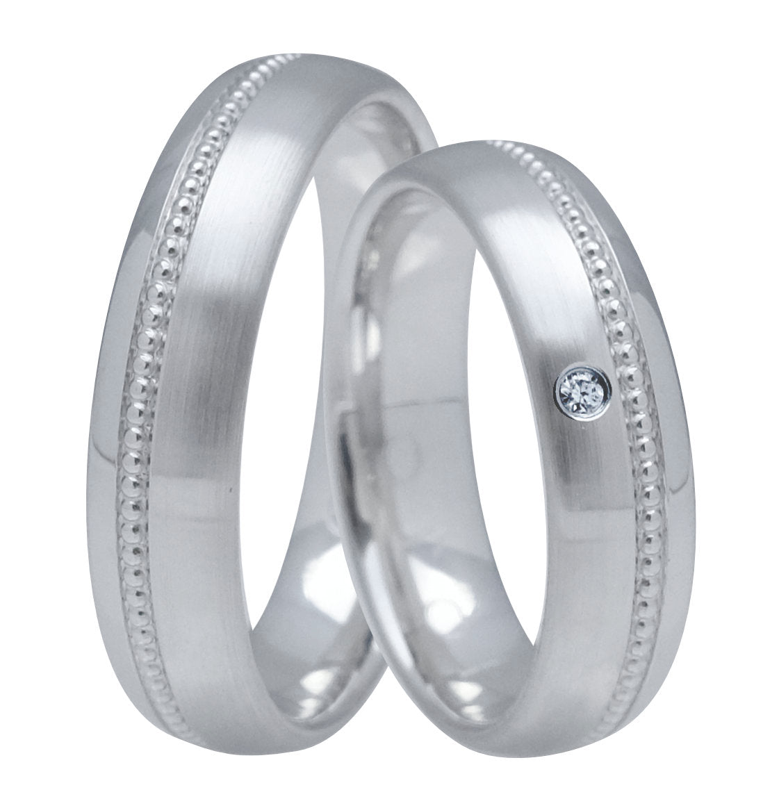 Ein strahlender Diamant (W/si, 0.0135 ct.) setzt einen eleganten Akzent und verleiht den Ringen eine besondere Note. Mit einer Breite von 5,50 mm und einer Höhe von 1,80 mm bieten sie sowohl Komfort als auch zeitlose Schönheit.
