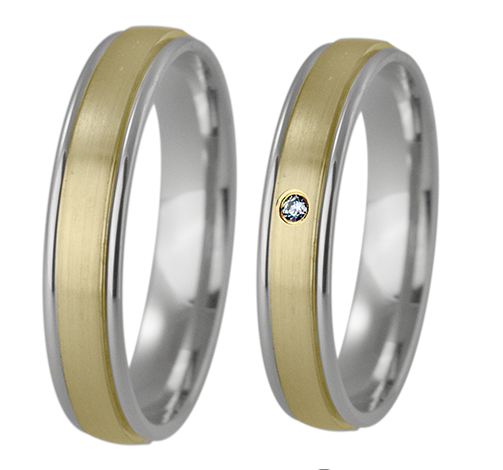 Ein edler Diamant (W/si) mit einem Karatgewicht von 0.0135 ct. setzt einen wunderschönen Akzent. Die Ringe sind in den Farben Weissgold, Gelbgold und Roségold erhaeltlich und zeichnen sich durch eine Hoehe von 1,40 mm und eine Breite von 4,50 mm aus.