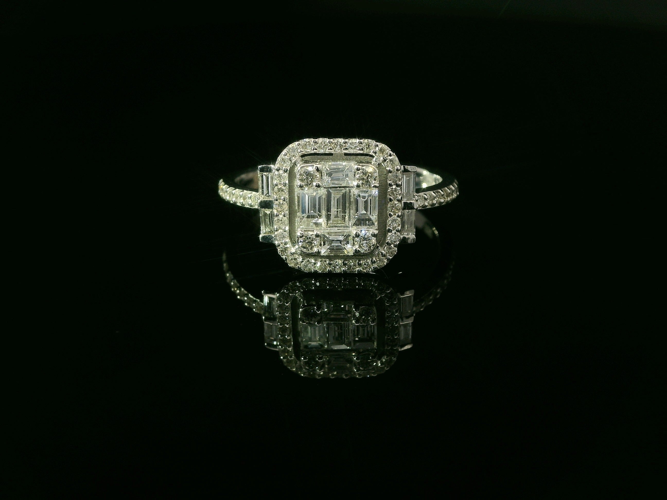 Ajoutez une touche d'élégance à votre moment spécial avec la bague de fiançailles Linden, fabriquée en or blanc 18 carats. Cette bague est une combinaison parfaite de design luxueux et de qualité exceptionnelle. La bague est sertie d'un total de 54 diamants, chacun de 0,04 carat, dans les couleurs FG et pureté SI (petites inclusions), 0,41 carat, également dans les couleurs FG et pureté SI. Ces diamants confèrent à la bague un éclat brillant et une qualité de première classe.
