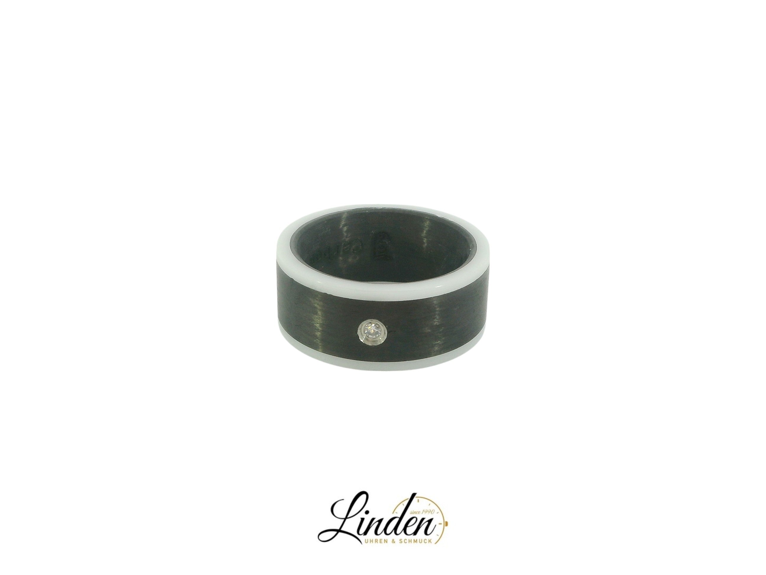 Diese stilvollen Ringe kombinieren modernes Design mit einem edlen Brillanten (0.02 ct., w/si) und der besonderen Materialkombination aus Carbon und hochwertiger Keramik.