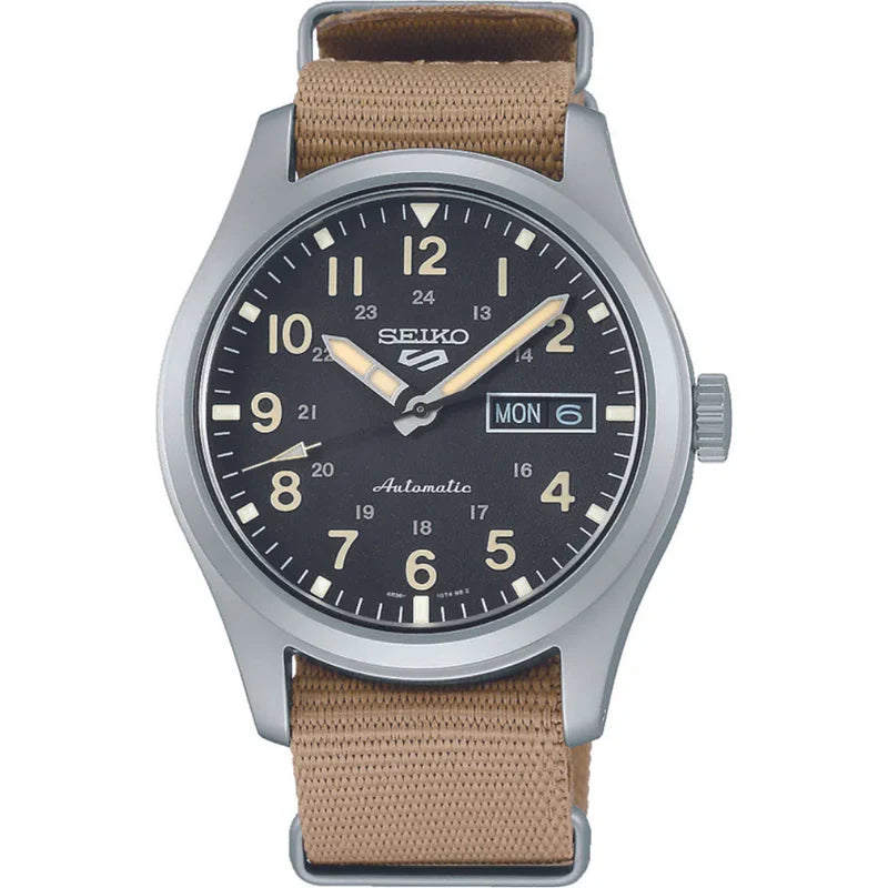 Les aiguilles et chiffres luminescents permettent une lisibilité aisée dans de mauvaises conditions d'éclairage. La base en verre vissée et la boîte de rangement d'origine du fabricant avec mode d'emploi complètent l'ensemble. Découvrez le mélange parfait de style et de fonctionnalité avec la montre unisexe Seiko 5 Sports Automatic Day-Date Nato Beige – un accessoire indispensable pour chaque occasion.