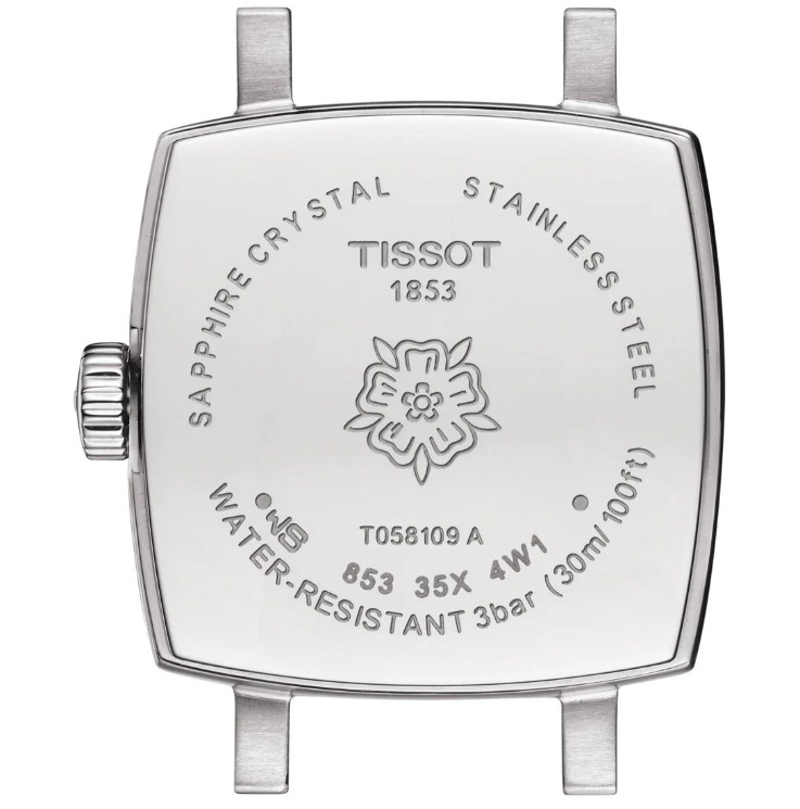 Cette version de la collection Tissot Lovely possède un boîtier carré avec un verre saphir saillant, biseauté et résistant aux rayures. Le modèle est doté d'un boîtier en acier inoxydable 316L et d'un cadran argenté simple et impeccable avec 12 index en diamant.