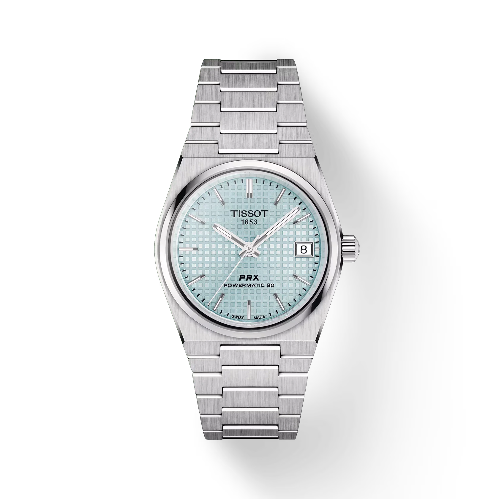 Étanche jusqu'à 10 bars (100 m) et équipée d'un spiral Nivachron™, la PRX Powermatic 80 35 mm bleu glacier est le choix parfait pour les amateurs de montres soucieux de leur style.