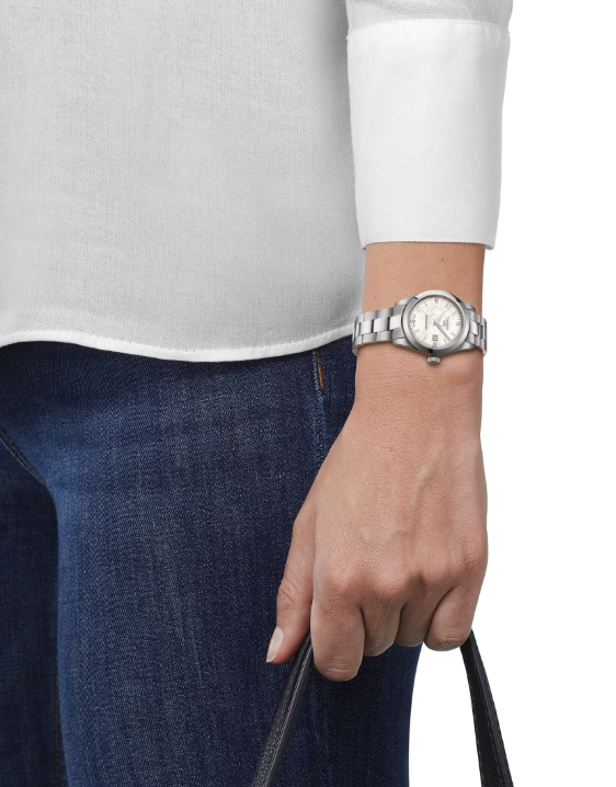 Son élégance discrète s'intègre dans la vie professionnelle quotidienne avec toutes ses exigences et s'harmonise avec une grande variété de styles vestimentaires, du jean au tailleur-pantalon en passant par la petite robe noire. Cette version de la T-My Lady possède un cadran en nacre serti de 8 diamants et un bracelet en acier inoxydable 316L avec boucle déployante et poussoirs. Le bracelet en cuir supplémentaire de couleur beige est doté d'une boucle déployante avec poussoirs.