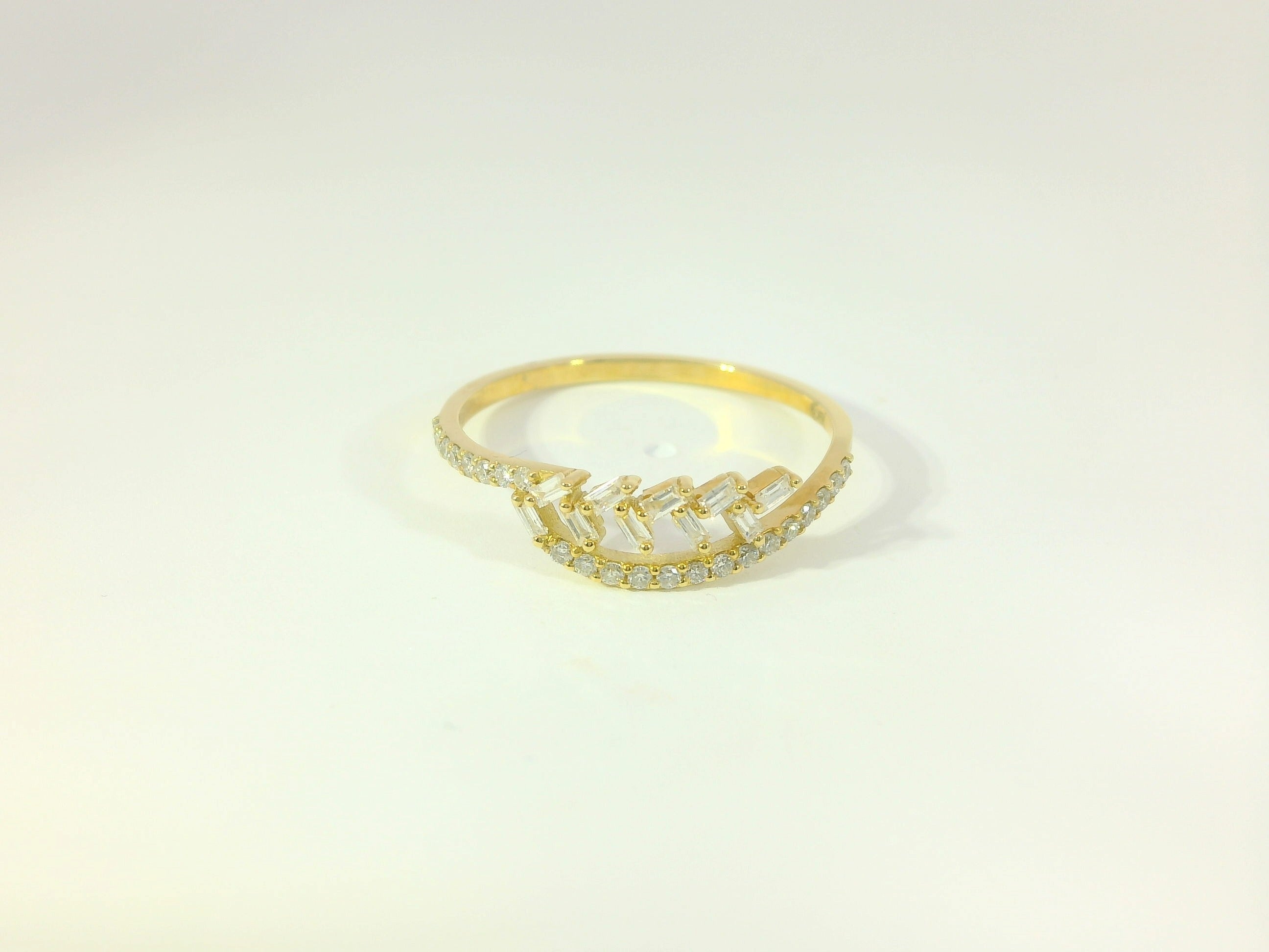 Bague délicate pour femme en or jaune 18 carats avec 22 diamants – Élégance intemporelle en taille 54
