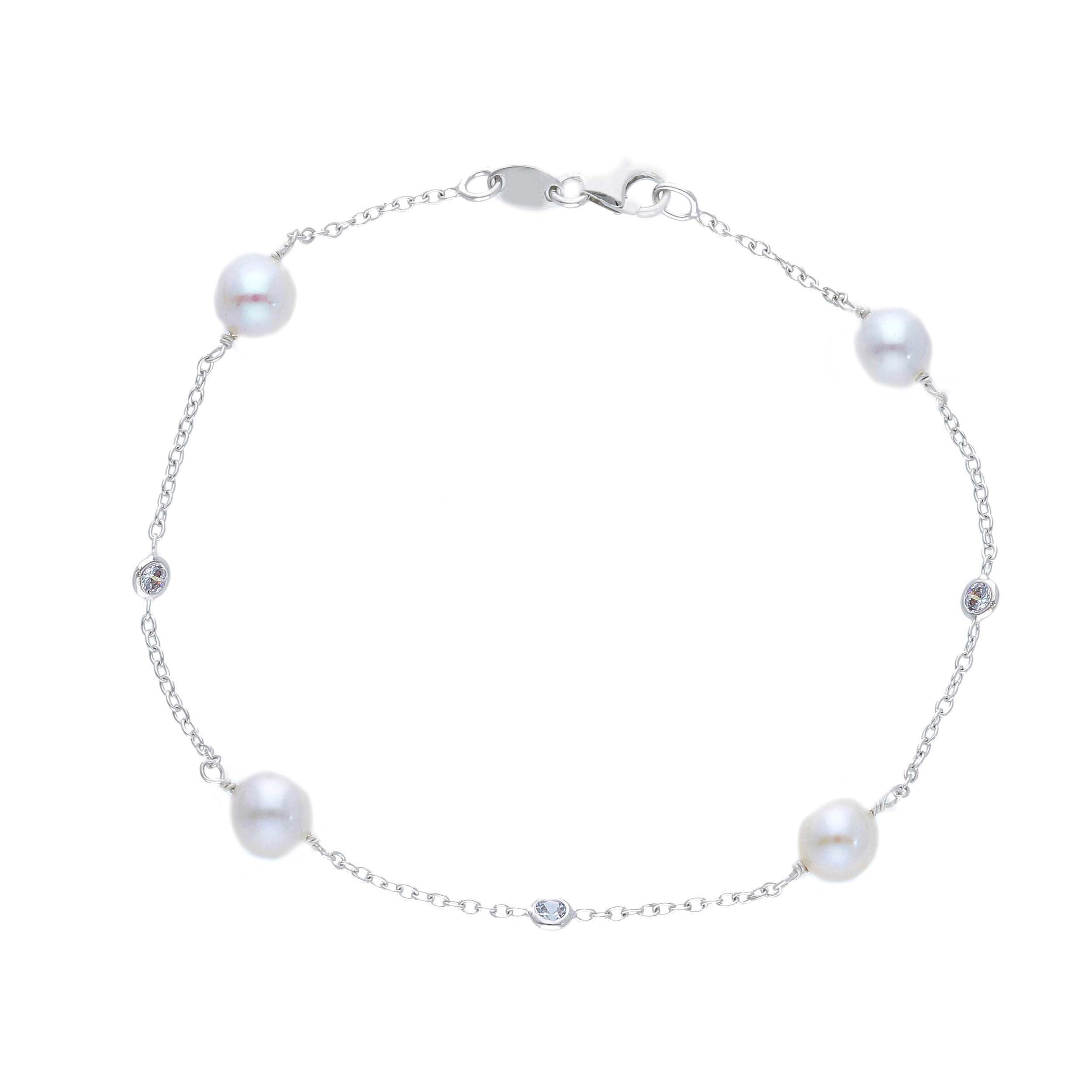 Dieses filigrane Armband aus hochwertigem 18 Karat Weissgold 750 kombiniert zarte Süsswasserperlen mit funkelnden Zirkonia-Steinen. Der elegante Karabiner-Verschluss sorgt für sicheren Halt. Mit nur 2,50 Gramm ist es leicht und dennoch ein stilvoller Blickfang. Inklusive Echtheitszertifikat – Lieferung in ca. 1 Woche.