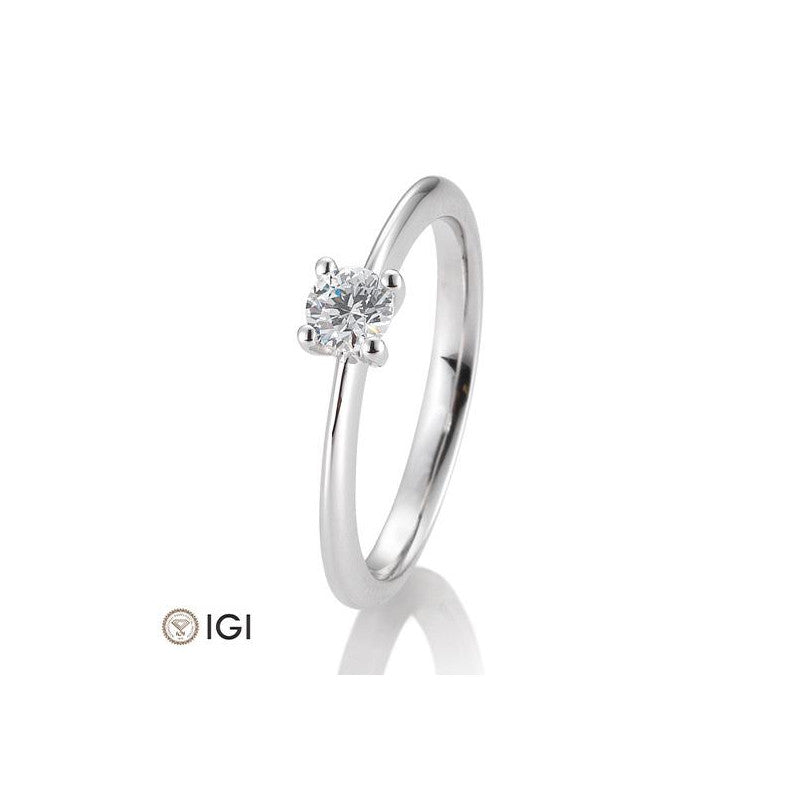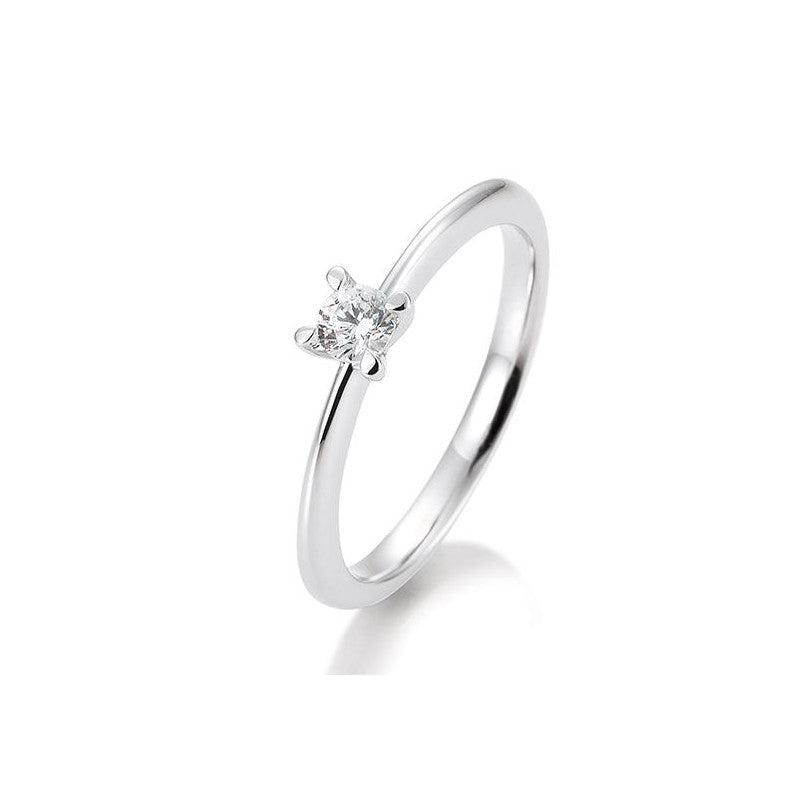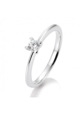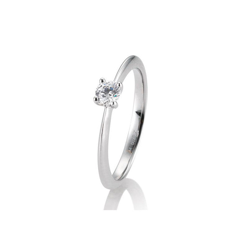 Im Mittelpunkt des Rings steht ein strahlender Diamant (H/SI) mit einem sehr guten Schliff, der für maximale Brillanz sorgt. Mit einer Reinheit von kleinen Einschlüssen (SI) bewahrt der Diamant seine natürliche Ausstrahlung und Eleganz. Die dezente Weißgold-Fassung unterstreicht die Reinheit des Steins und verleiht dem Ring eine besonders raffinierte Note.