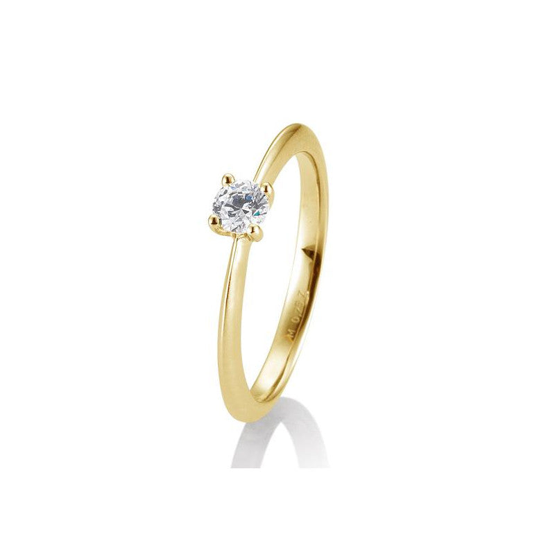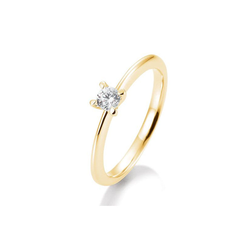 Der Solitär-Ring ist in 14 Karat Gold (585) und 18 Karat Gold (750) erhältlich, was Ihnen die Möglichkeit bietet, das Material nach Ihren individuellen Vorlieben zu wählen. Das edle Design wird durch die klassische 4er-Krappenfassung abgerundet, die den Diamanten perfekt in Szene setzt und seine funkelnde Schönheit betont.
