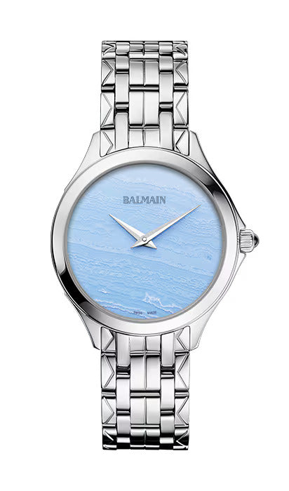 Entdecken Sie zeitlose Eleganz mit der Balmain Flamea Damenuhr B4791.33.97 – ein edles Accessoire für stilbewusste Frauen. Diese luxuriöse Armbanduhr überzeugt mit einem hochwertigen 316L-Edelstahlgehäuse mit PVD-Beschichtung, einem robusten kratzfesten Saphirglas und einem einzigartigen Zifferblatt aus blauem Spitzenachat. Mit einem Durchmesser von 34 mm passt sie perfekt an jedes Damenhandgelenk und bietet optimalen Tragekomfort durch das elegante Edelstahlarmband mit Faltschließe.
