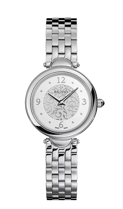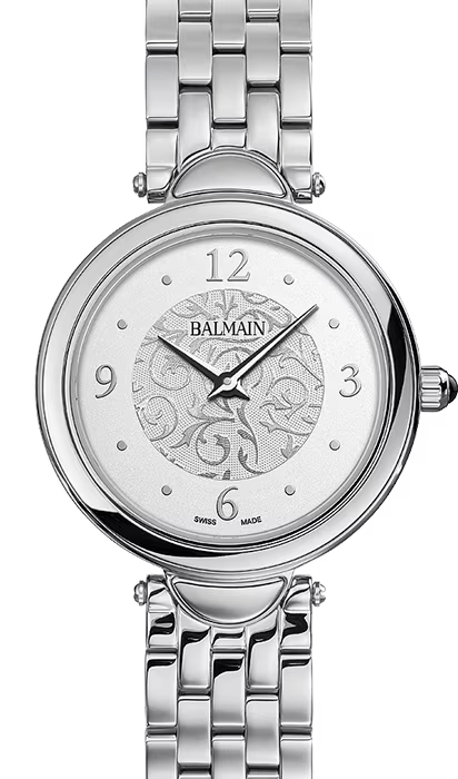 Die Balmain Haute Elegance B8151.33.14 überzeugt mit schlichter Raffinesse und zeitlosem Design. Das runde Edelstahlgehäuse aus 316L-Stahl mit PVD-Beschichtung wird durch ein passendes Edelstahlarmband in Silber ergänzt. Das silberne Zifferblatt ist mit kratzfestem Saphirglas geschützt und sorgt zusammen mit dem präzisen ETA 282.002 Quarzwerk für zuverlässige Zeitmessung. Wasserdicht bis 5 bar, inklusive Originalbox und 2 Jahre internationaler Garantie – eine elegante Begleiterin für jeden Tag.