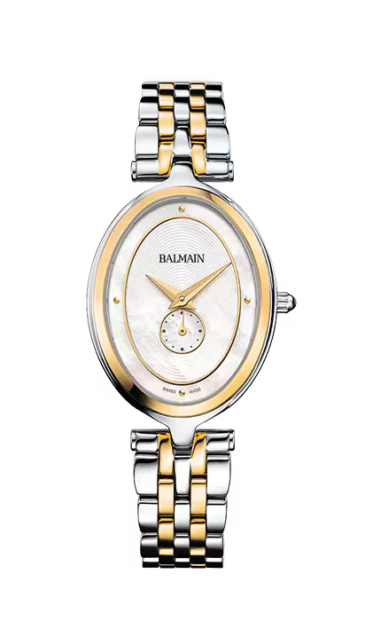Die Balmain Haute Elegance Oval B8112.39.86 kombiniert feminine Eleganz mit klassischem Design. Das 316L-Edelstahlgehäuse mit edler Bicolor-PVD-Beschichtung harmoniert perfekt mit dem passenden Edelstahlarmband. Das silberne Zifferblatt wird von kratzfestem Saphirglas geschützt. Im Inneren sorgt ein präzises ETA 980.153 Quarzwerk für zuverlässige Zeitmessung. Wasserdicht bis 5 bar und geliefert in der Originalbox mit 2 Jahren internationaler Garantie – eine stilvolle Uhr für jeden Anlass.