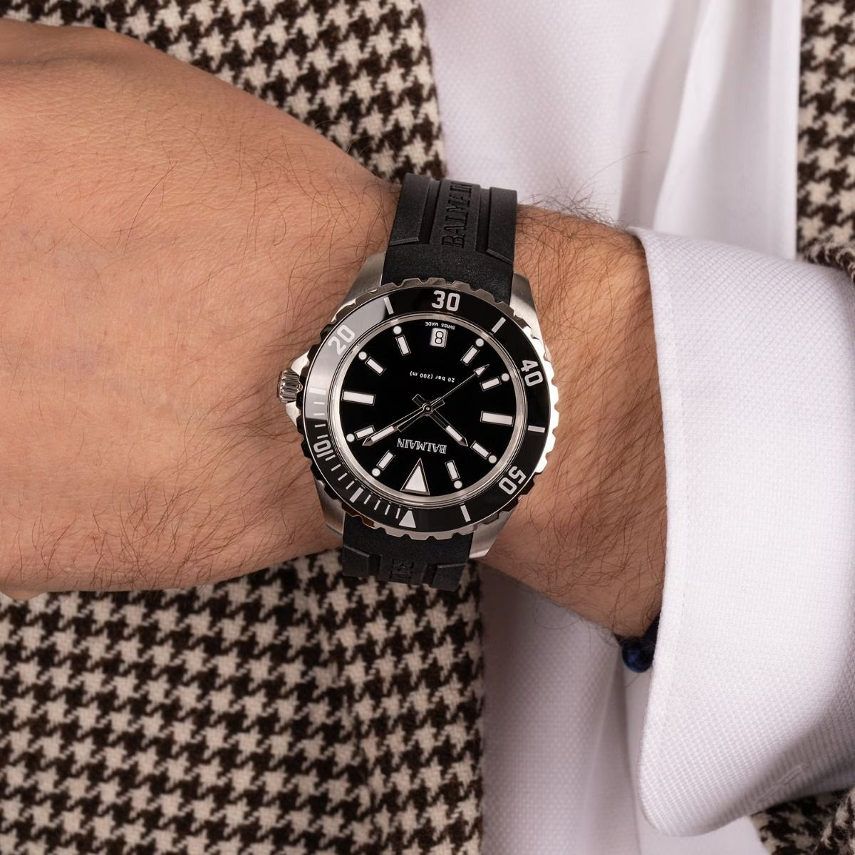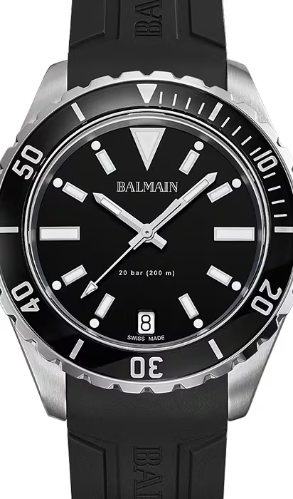 Die Balmain Ophrys (Ref. B4347.32.65) kombiniert robustes Design mit Schweizer Präzision. Das 42,50 mm Gehäuse aus 316L-Edelstahl mit PVD-Beschichtung und das strapazierfähige schwarze Kautschukarmband verleihen ihr eine sportlich-maskuline Ausstrahlung. Das schwarze Zifferblatt ist durch kratzfestes Antireflex-Saphirglas optimal geschützt. Im Inneren sorgt das präzise ETA F07.115 Quarzwerk für zuverlässige Zeitmessung. Mit einer Wasserdichtigkeit von 20 bar (200 m) ist sie sowohl für den Alltag als auch für Outdoor-Aktivitäten geeignet. Lieferung in der originalen Balmain Box mit 2 Jahren internationaler Garantie.