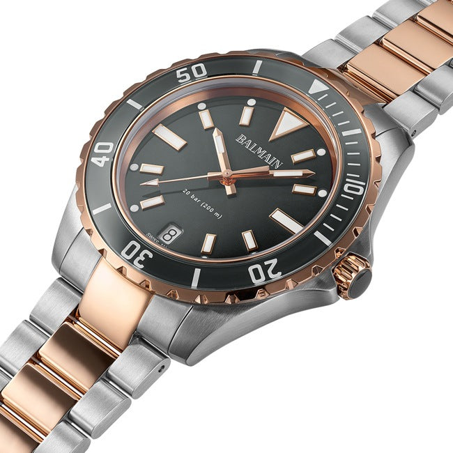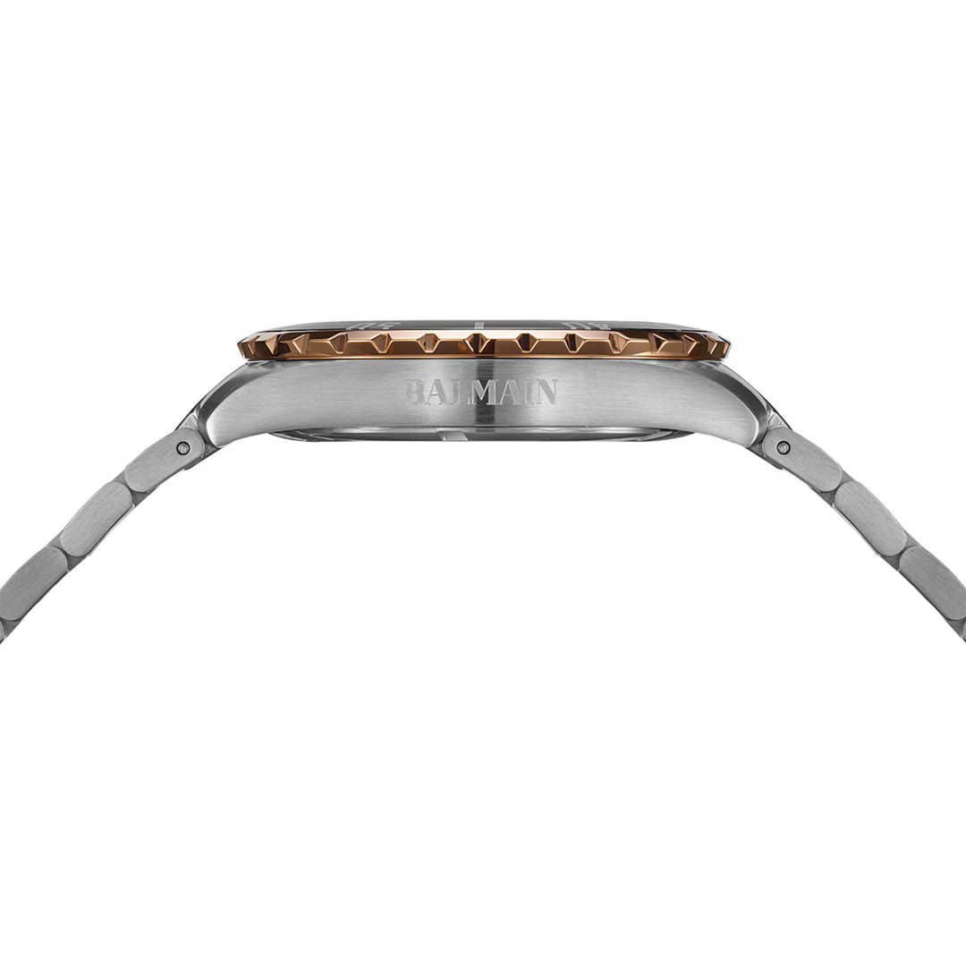 Die Balmain Ophrys Herrenuhr (B4349.33.76) vereint zeitlose Eleganz mit robuster Funktionalität. Das runde 316L-Edelstahlgehäuse mit PVD-Beschichtung und das edle Bicolor-Edelstahlarmband setzen ein stilvolles Statement. Im Inneren sorgt das präzise ETA F07.115 Quarzwerk für zuverlässige Zeitmessung. Kratzfestes Antireflex-Saphirglas schützt das anthrazitfarbene Zifferblatt, während die Wasserdichtigkeit bis 20 bar (200 m) auch sportliche Aktivitäten erlaubt. Geliefert in der originalen Balmain Box mit 2 Jahren internationaler Garantie.