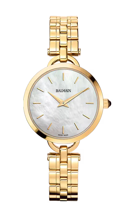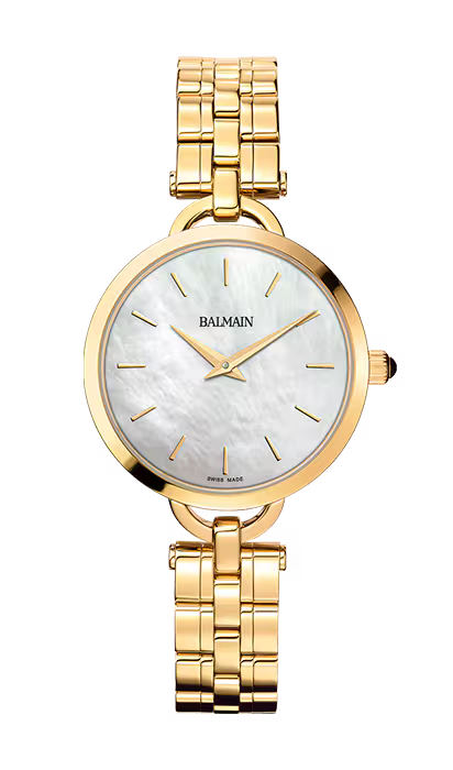 Die Balmain Orithia Damenuhr (Referenz B4770.33.86) ist ein Inbegriff von femininer Eleganz und exklusivem Design. Mit ihrem edlen goldfarbenen Edelstahlarmband, dem feinen Perlmutt-Zifferblatt und dem hochwertigen Schweizer Quarzwerk ist sie das perfekte Accessoire für stilbewusste Damen, die auf Qualität und Ausdruckskraft setzen.