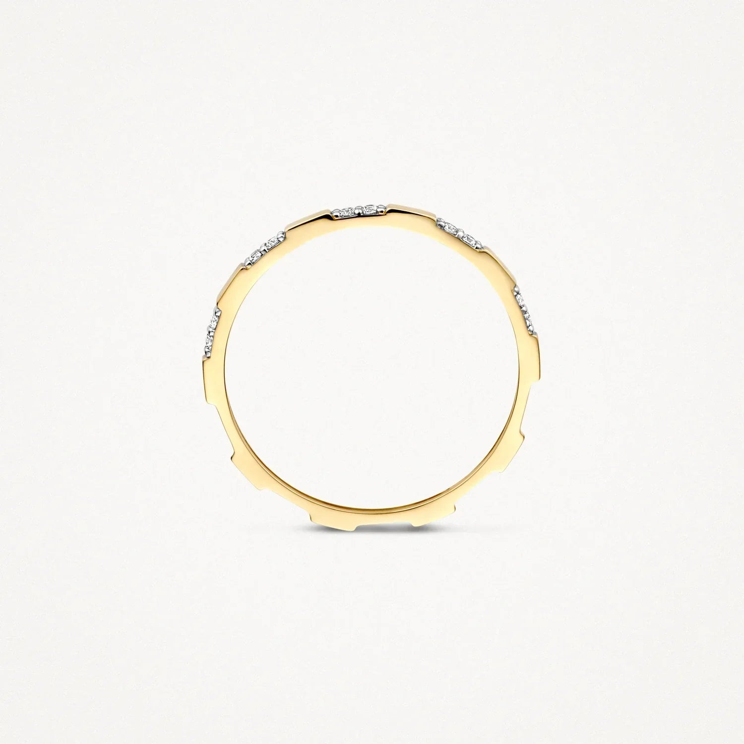 Entdecken Sie die zarte Eleganz des Blush Rings 1260YZI – ein fein gearbeiteter Damenring aus hochwertigem 14-karätigem Gelbgold (585), der mit funkelnden Zirkoniasteinen im Brillantschliff besetzt ist. Die Kombination aus poliertem Gold und den brillant strahlenden Zirkonias sorgt für einen stilvollen und zugleich dezenten Look.