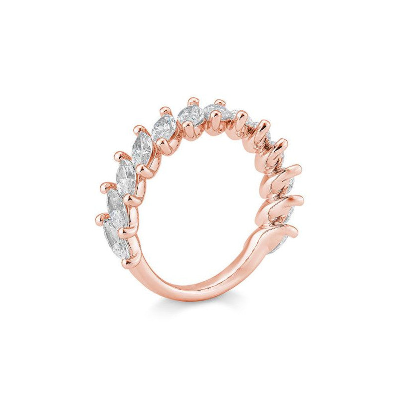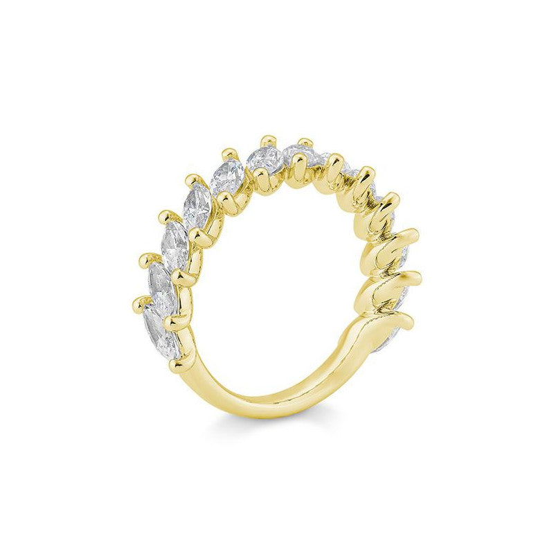 Der breite Halbmemoire Navette Labordiamantring mit 2.42 Karat vereint zeitlose Eleganz und nachhaltigen Luxus. Ausgestattet mit 11 funkelnden Labordiamanten im Brillantschliff, strahlt der Ring in feinem Weiss (Top Wesselton) und überzeugt durch eine exzellente Brillanz. Mit einer Reinheit von VS und einem sehr guten Schliff bieten die Diamanten einen faszinierenden Glanz. Die markante Navette-Form verleiht dem Ring eine elegante, längliche Silhouette, die den Finger optisch verlängert. Der Halbmemoire-Schliff, bei dem die Diamanten zu 60% ausgefasst sind, sorgt für ein harmonisches Gesamtbild und hebt die Schönheit der Steine hervor. Der Ring ist in 14 Karat (585) oder 18 Karat (750) Gold erhältlich und kann in den Farben Weissgold, Gelbgold oder Roségold bestellt werden. Mit einer Breite von ca. 6,10 mm und einer Höhe von ca. 3,30 mm hat dieser Ring eine beeindruckende Präsenz und ist zugleich dezent genug für den täglichen Gebrauch. Die Lieferzeit beträgt ca. 2-3 Wochen. Labordiamanten bieten nicht nur eine umweltfreundliche, sondern auch eine ethische Wahl für anspruchsvolle Schmuckliebhaber.