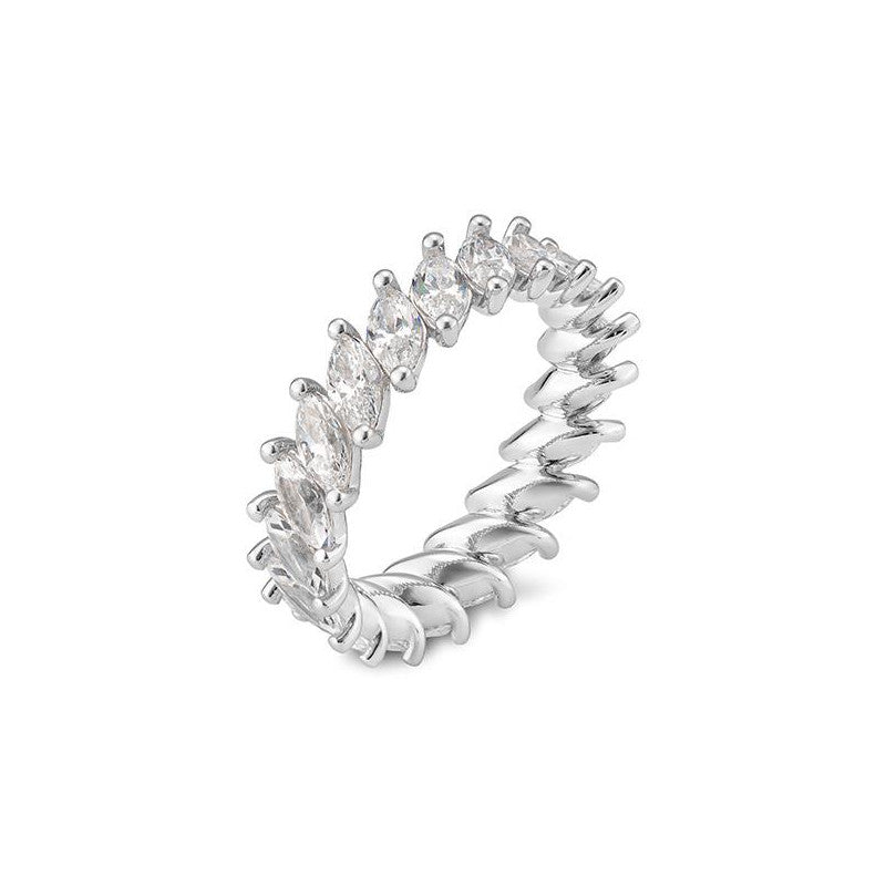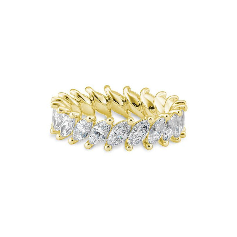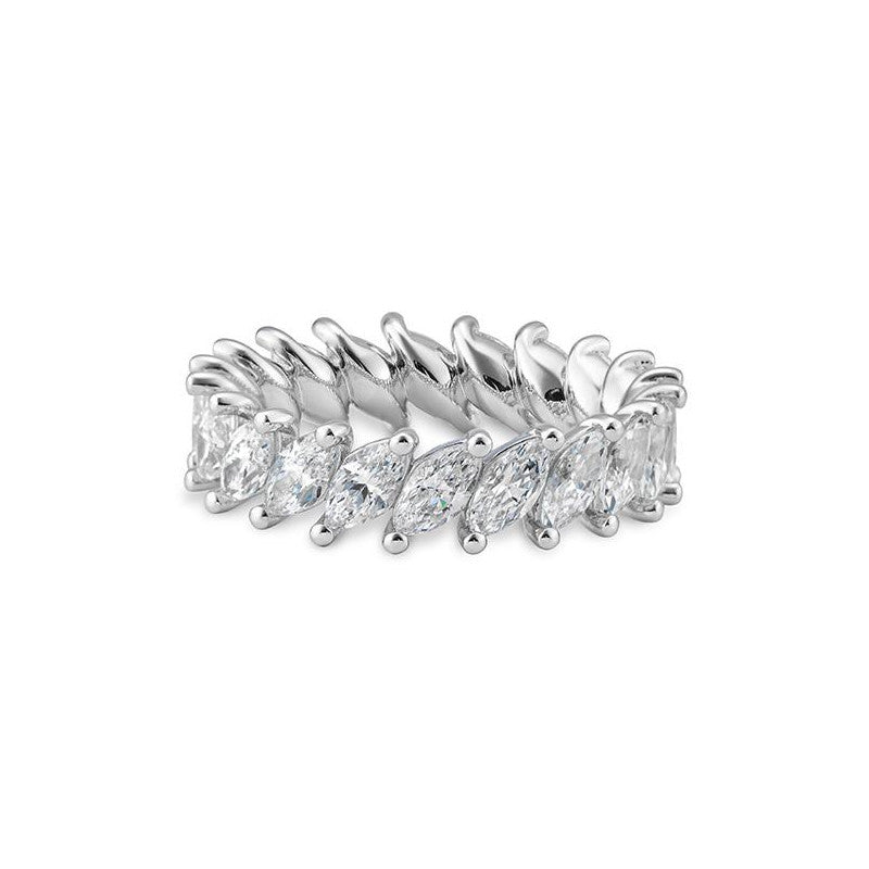 Der breite Memoire Navette Labordiamantring mit 3.96 Karat vereint beeindruckende Größe mit edelster Handwerkskunst. Ausgestattet mit 18 funkelnden Labordiamanten im Brillantschliff, strahlt dieser Ring eine aussergewöhnliche Brillanz aus. Die Diamanten in feinem Weiss (Top Wesselton) bieten eine Reinheit von VS und eine sehr gute Schliffqualität, die ihnen eine bemerkenswerte Leuchtkraft verleiht. Die markante Navette-Form verleiht dem Ring eine elegante, längliche Silhouette und lässt den Finger optisch schlanker wirken. Mit einer Breite von ca. 6.10 mm und einer Höhe von ca. 3.30 mm bietet der Ring eine auffällige Präsenz und wird so zum Statement-Schmuckstück. Der Ring ist in 14 Karat (585) oder 18 Karat (750) Gold erhältlich und kann in den Farben Weissgold, Gelbgold oder Roségold gewählt werden. Labordiamanten sind die ethische Wahl für moderne Schmuckliebhaber, da sie umweltfreundlich und nachhaltig produziert werden. Die Lieferzeit beträgt ca. 2-3 Wochen.