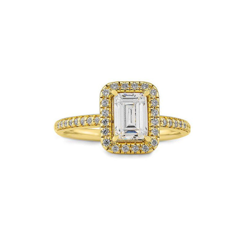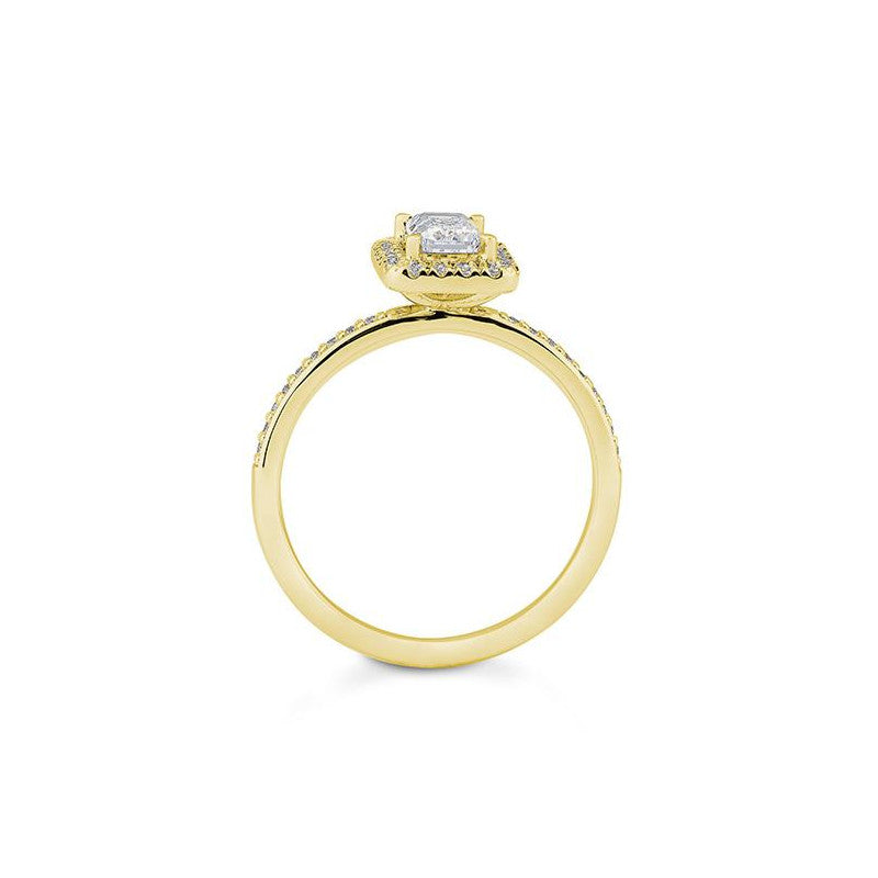 Verleihen Sie Ihrem Verlobungsmoment unvergessliche Eleganz mit unserem hochwertigen Solitär-Verlobungsring. Gefertigt aus edlem Gold (585/- und 750/- Platin) ist dieser Ring nicht nur ein Symbol für Liebe und Verbundenheit, sondern auch ein Statement für modernen Luxus und Nachhaltigkeit. Der Lab-Grown Diamant besticht durch aussergewöhnliche Brillanz und eine reinweisse Farbe in Wesselton-Qualität, die durch 39 kleine Diamanten noch verstärkt wird.