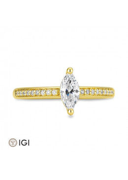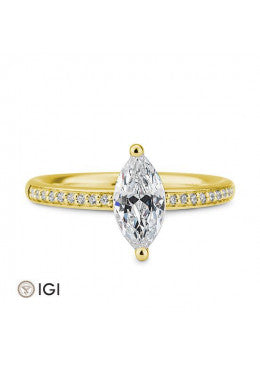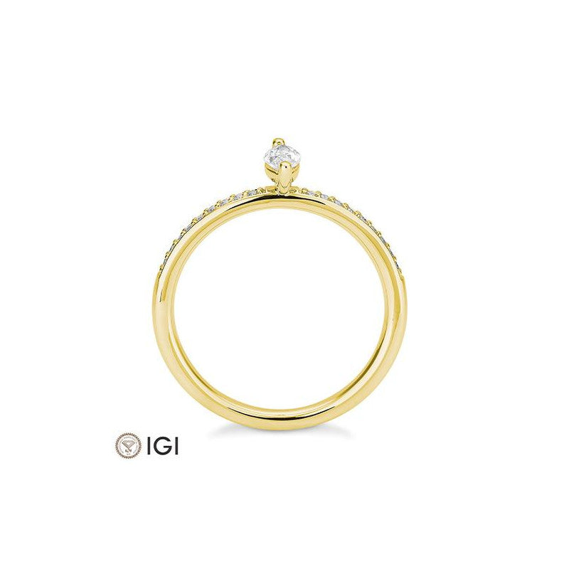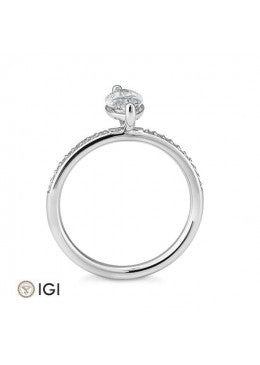 Mit einer Steingroesse von 0,909 Karat und einem "Sehr gut" bewerteten Schliff überzeugt er durch beeindruckende Brillanz und Lichtreflexe. Die Farbqualitaet Feines Weiss (Top Wesselton) sowie die Reinheit G/Vs LG (Lab Grown) unterstreichen den hohen Anspruch an Qualitaet.