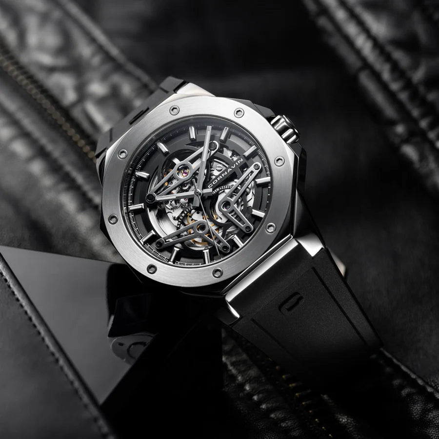 Die Cornavin SK.01.R ist eine Schweizer Uhr mit einem skelettierten Automatikwerk. Die Vorder- und Rückseite sind durch Saphirglas geschützt und erlauben einen faszinierenden Blick auf die Uhr von beiden Seiten.