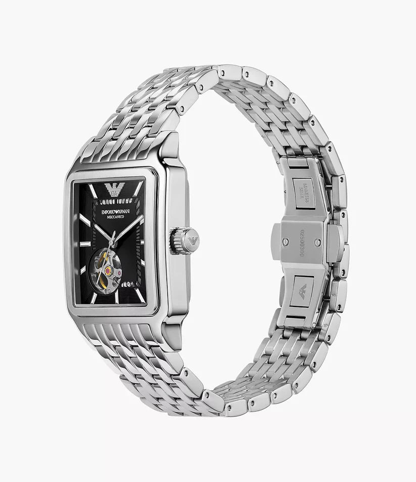 Die Emporio Armani AR60059 Herrenuhr vereint zeitlose Eleganz mit modernem Luxusdesign. Ihr 36 mm Edelstahlgehäuse in Silber harmoniert perfekt mit dem passenden Edelstahlarmband, das durch einen Butterfly-Verschluss sicheren Halt und höchsten Tragekomfort bietet. Das schwarze Zifferblatt verleiht der Uhr einen kraftvollen, stilvollen Kontrast und macht sie zu einem Blickfang am Handgelenk. Angetrieben von einem Automatikwerk mit Drei-Zeiger-Anzeige bietet die Uhr präzise Zeitmessung ohne Batteriewechsel. Mineralglas schützt das Zifferblatt vor Kratzern, während eine Wasserdichtigkeit von 5 ATM die Uhr zuverlässig für den Alltag macht.