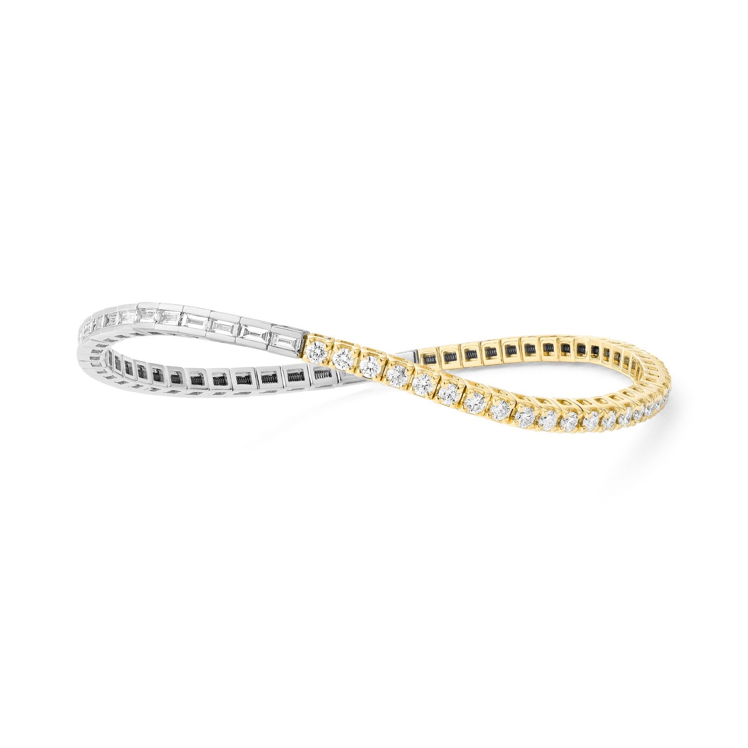 Die Diamanten mit der Reinheit GHSI/FGVS verleihen diesem atemberaubenden Bicolor-Armband mit elastischem Verschluss ein brillantes Funkeln.