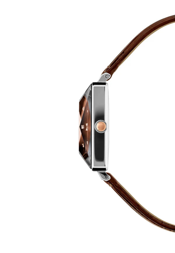 Die Facet Princess Schweizer Damenuhr vereint zeitlose Eleganz mit modernster Technik. Ausgestattet mit einem Schweizer Quarz-Uhrwerk der Marke Ronda, bietet sie eine präzise Stunden- und Minutenanzeige sowie eine lange Batterielaufzeit. Das Zifferblatt mit reflektierendem Sonnenschliff sorgt für einen faszinierenden Glanz, der im Licht schimmert.