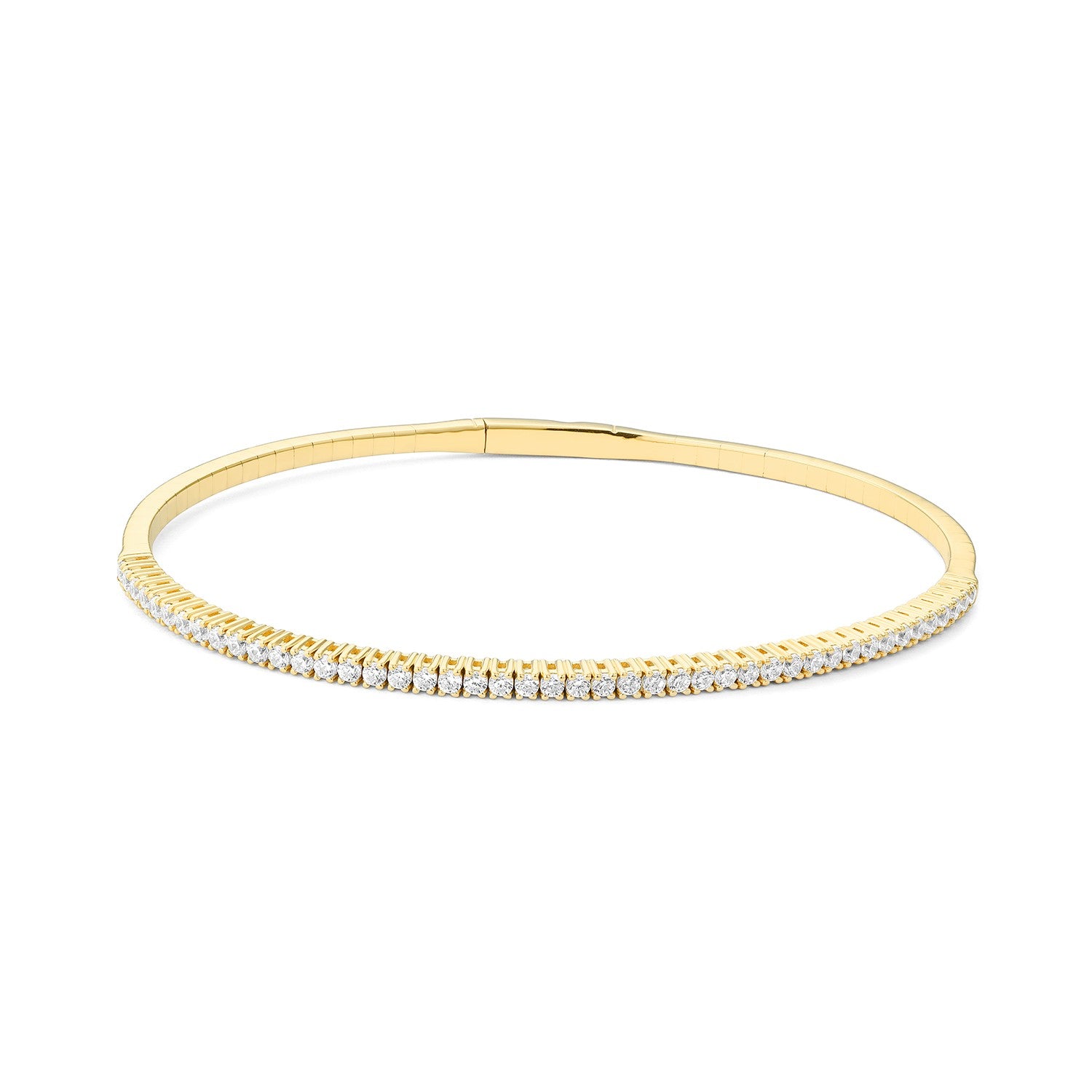 Entdecken Sie die exquisite Schönheit unseres Facetten-Tennisarmreifs mit Brillanten, gefasst in 18 Karat-750er Gelbgold.