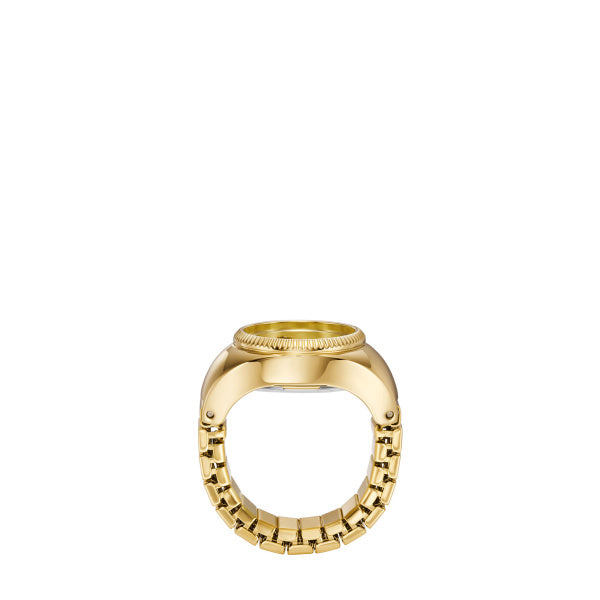 Die Fossil RING Watch Damenuhr vereint Schmuck und Funktion in einem eleganten Accessoire. Gefertigt aus hochwertigem Edelstahl in Gold, besticht sie durch ein stilvolles goldfarbenes Zifferblatt und ein passendes schmales Armband in Gold.